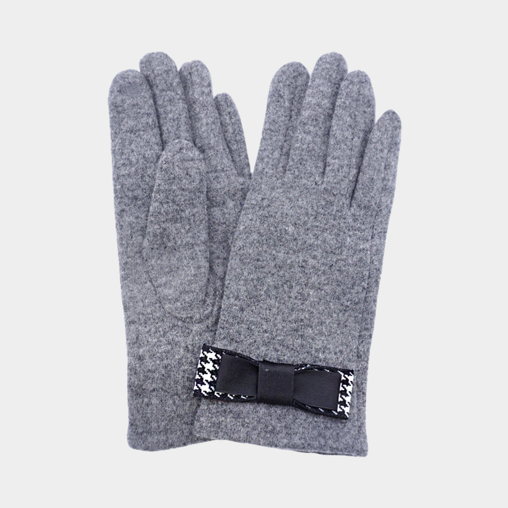 Details • Size : One Size • Material : 100% Polyester • Smart Touch • Stylish gloves designed with a refined bow accent at the cuff, offering both elegance and comfort. Featuring smart touch technology for easy phone and tablet use, these versatile gloves are perfect for everyday wear, combining warmth, practicality, and timeless feminine charm for winter outfits.