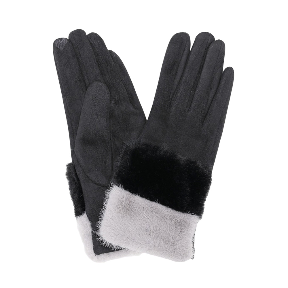 • Warm gloves designed with soft faux fur cuffs and smart touch fingertips for phone use. A cozy yet stylish accessory, perfect for keeping hands comfortable in cold weather while adding a chic seasonal finish to everyday outfits.