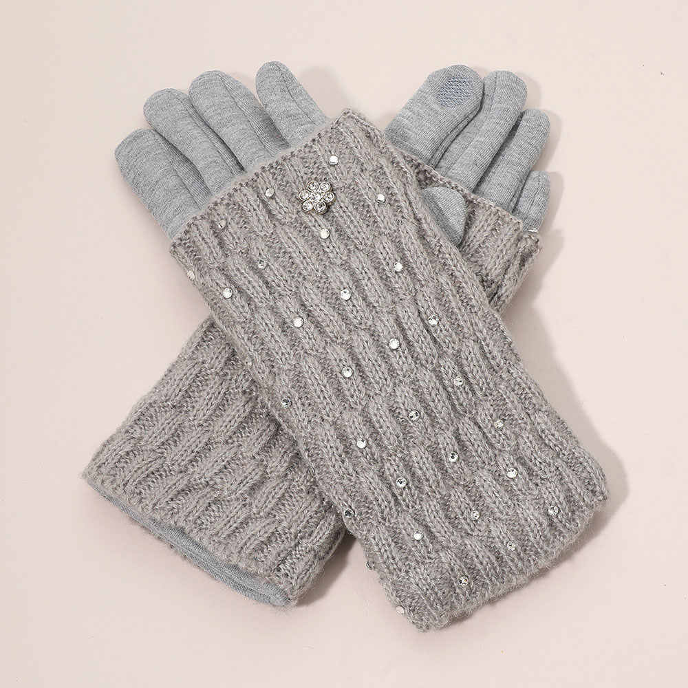 Floral Rhinestone Point Smart Touch Knit Winter Gloves