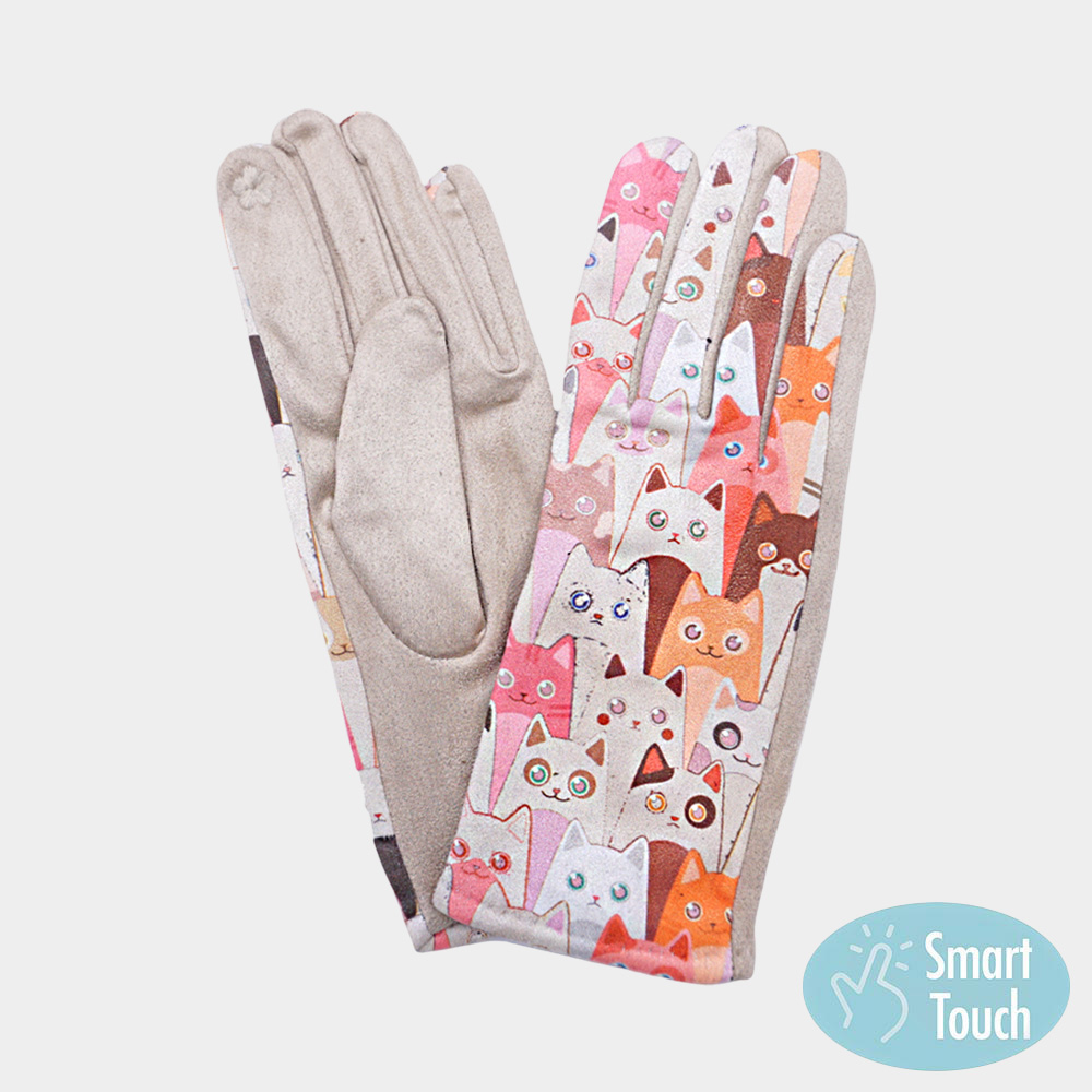 Details • Size : One Size • Material : 100% Polyester • Smart Touch • Add fun to cold-weather outfits with these smart touch gloves featuring a lively cat print. Designed for warmth and touchscreen compatibility, they combine comfort, style, and personality for everyday use or as a unique gift.