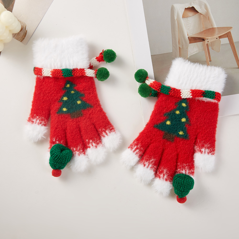 Details • Size : One Size • Smart Touch • Material : 100% Polyester • Festive knit gloves with Christmas tree pattern, fluffy cuffs, and playful pom pom details. Designed with smart touch capability, these cozy gloves bring holiday cheer while keeping hands warm and functional in winter.