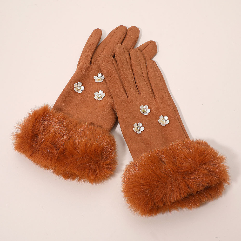 Details • Size : One Size (10" L) • Material : 100% Polyester • Smart Touch • Elegant smart touch gloves featuring faux fur cuffs and delicate floral embellishments for a chic, feminine touch. Designed for comfort and style, these gloves keep hands warm while allowing easy touchscreen use, perfect for everyday wear or adding flair to winter outfits.