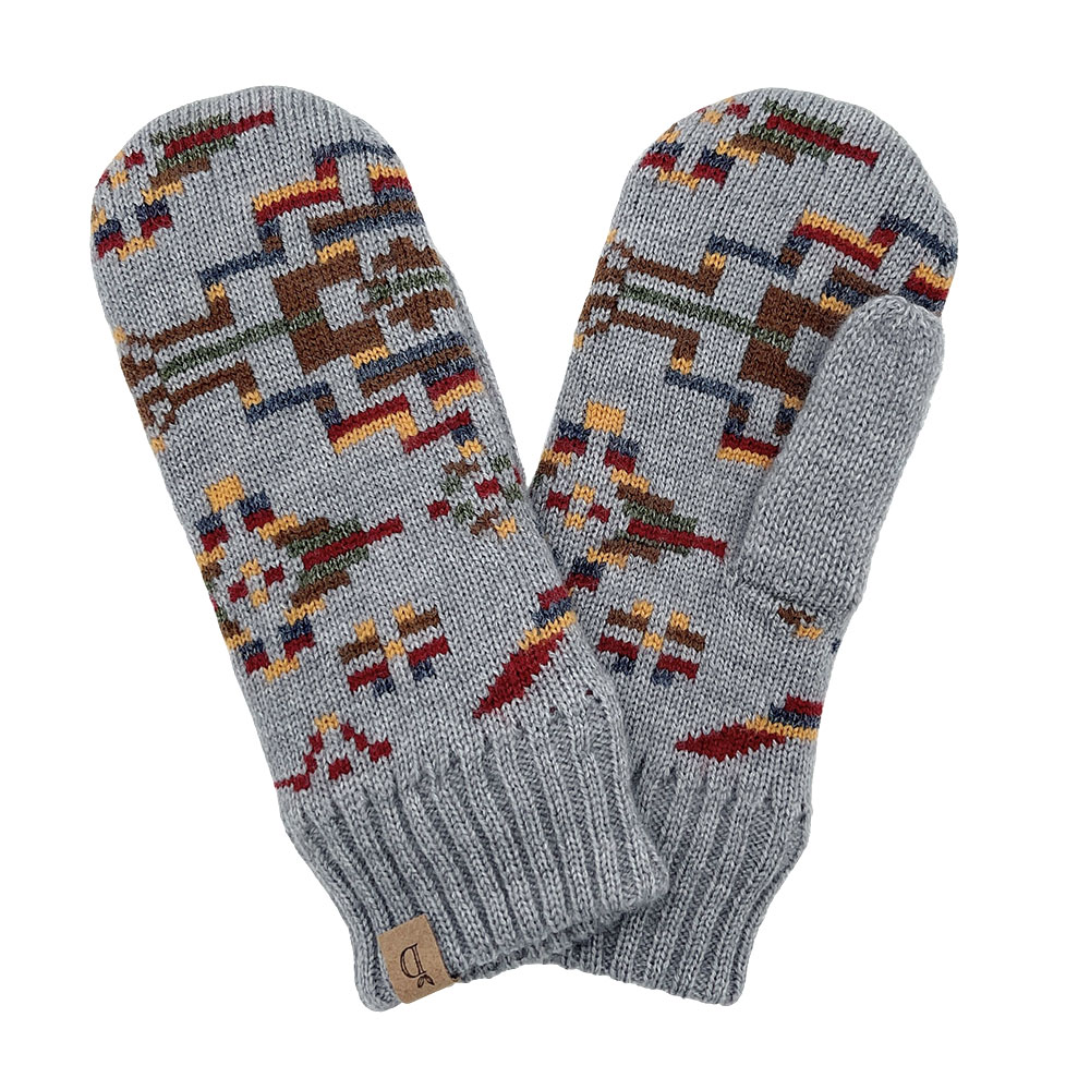 Ribbed Cuff Aztec Patterned Knit Winter Mittens