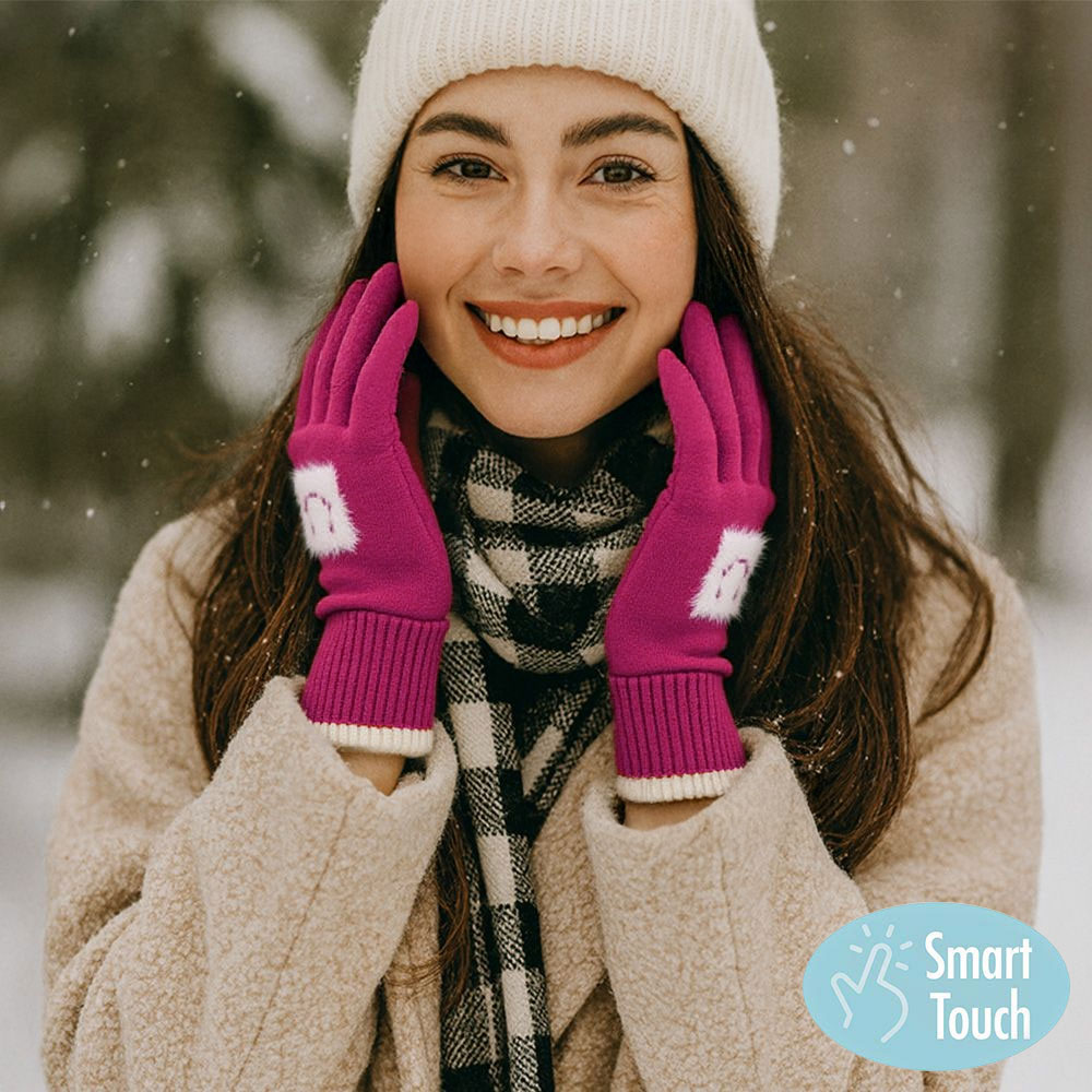 Details • Size : One Size • Material : 100% Polyester • Smart Touch • Cozy knit gloves with smart touch technology, featuring a playful face motif and contrast trim design. Perfect for keeping hands warm while allowing easy use of smartphones and tablets. A stylish and practical cold-weather accessory that combines fun detailing with everyday functionality.
