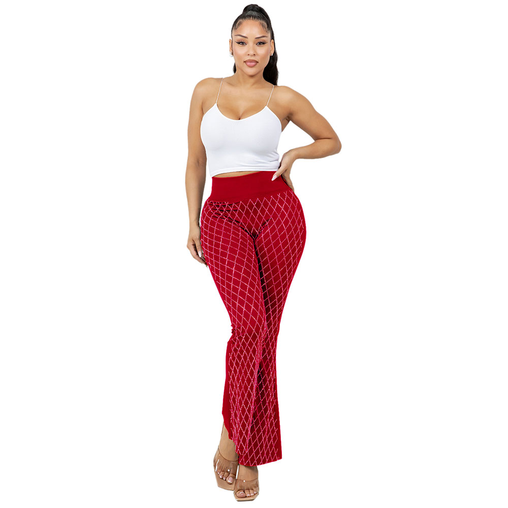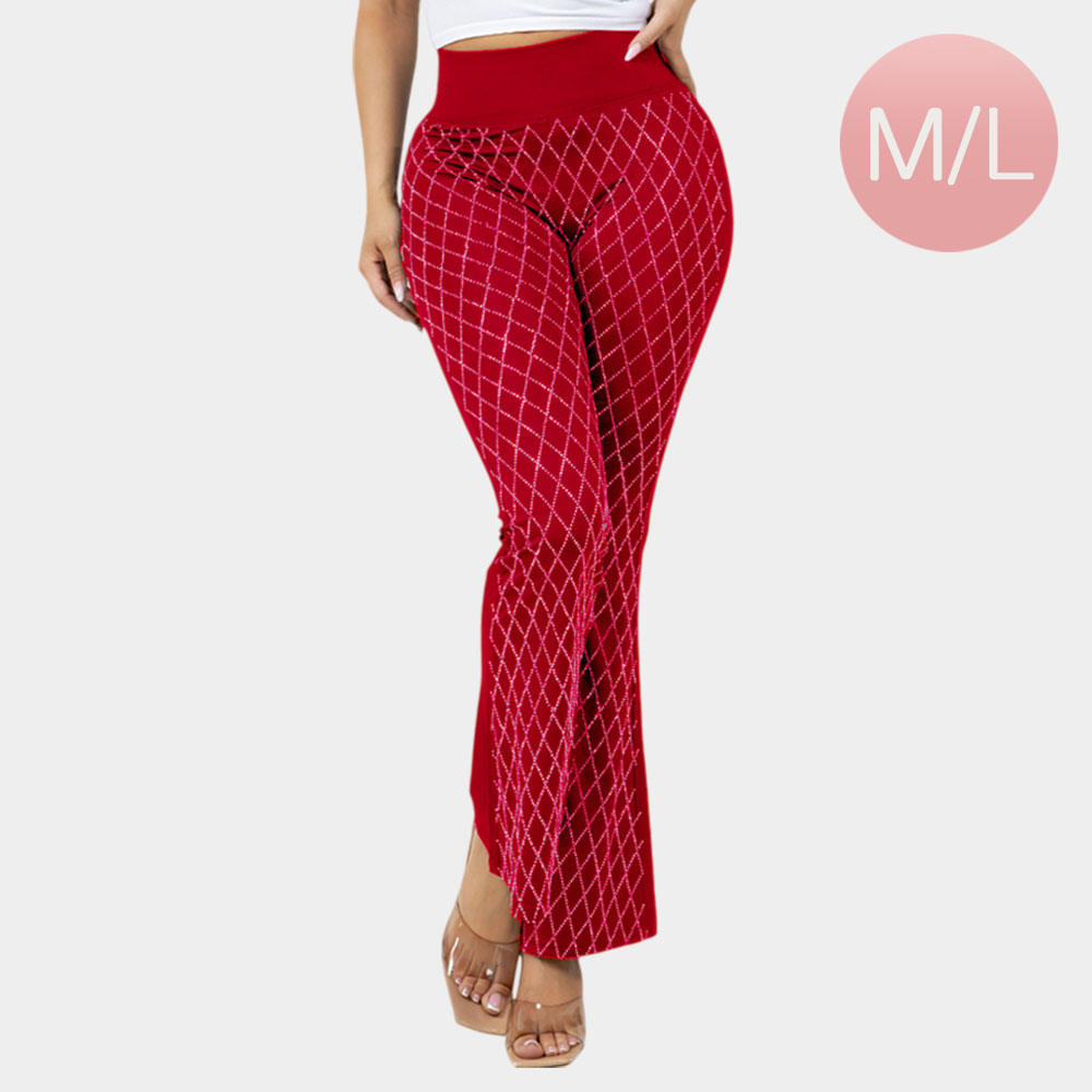 High Waisted Bling Studded Diamond Pattern Flare Leggings