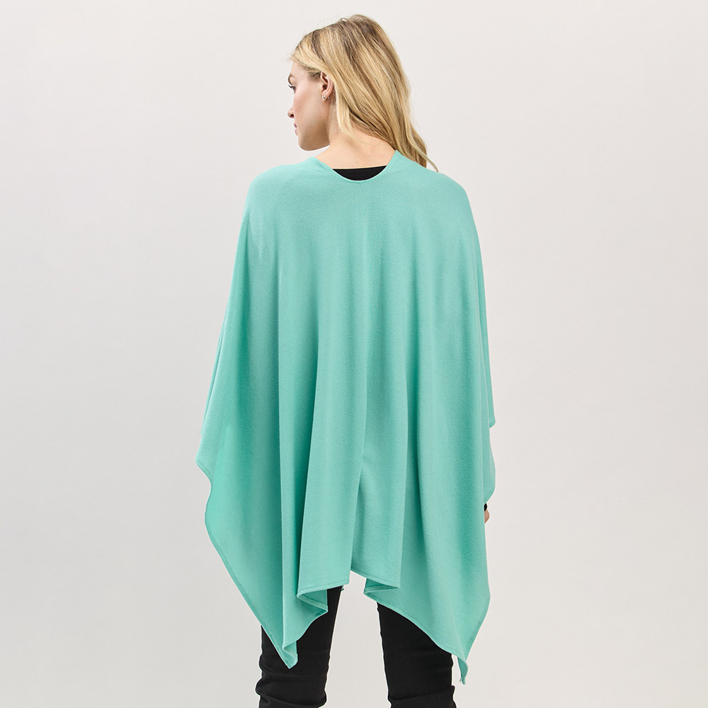 Details • Size : 46" X 28" • Material : 100% Polyester • Elevate your layering with this chic tie-front poncho wrap featuring a draped silhouette and asymmetrical hem. Stylish and cozy, it's perfect for transitional weather, casual days, or adding flair to any outfit.