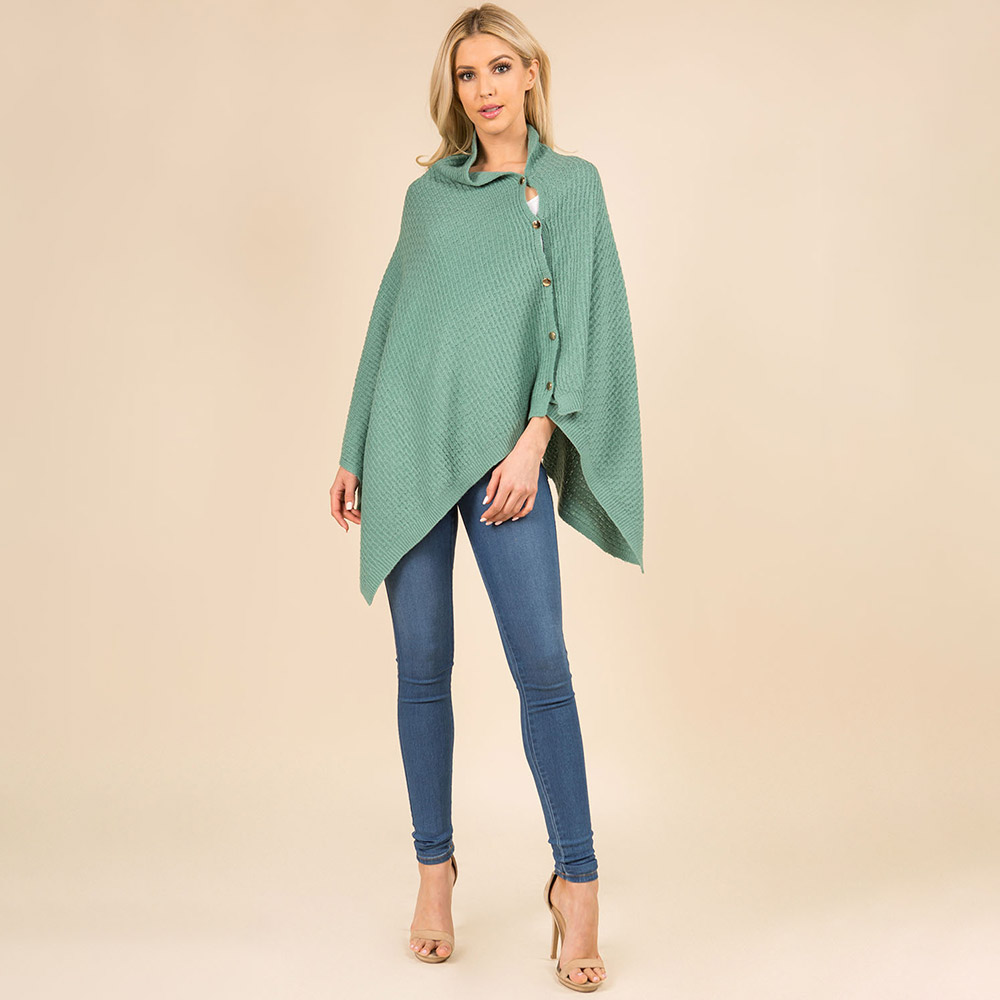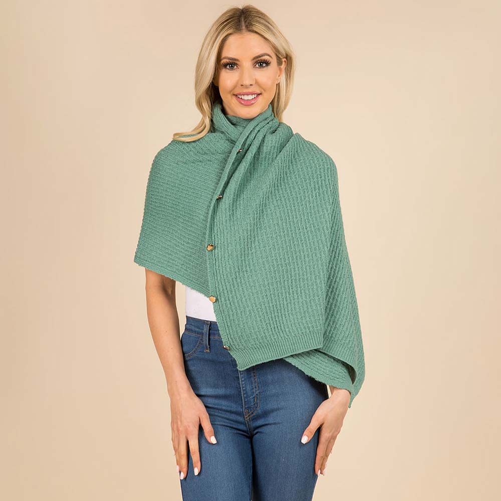Convertible Button Up Waffle Knit Shawl Cape Poncho