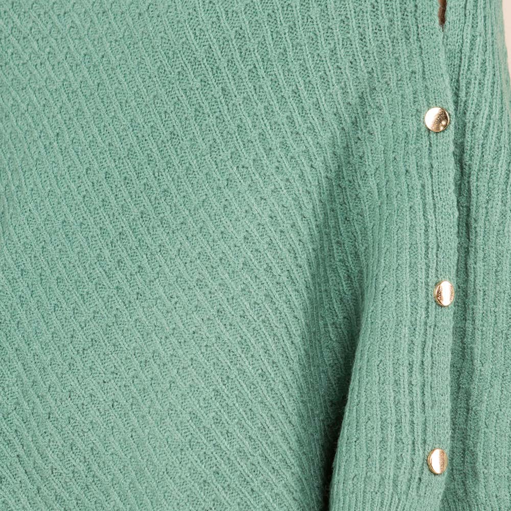 Details • Size : One Size • Material : 100% Acrylic • Wrap yourself in cozy texture with this button-up knit shawl that effortlessly transforms into a stylish poncho. The textured finish and structured drape offer timeless warmth and versatility for everyday layering or elegant evening looks.