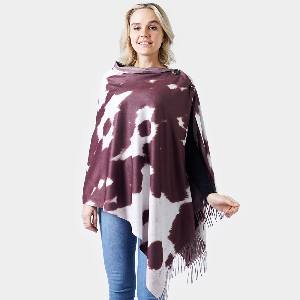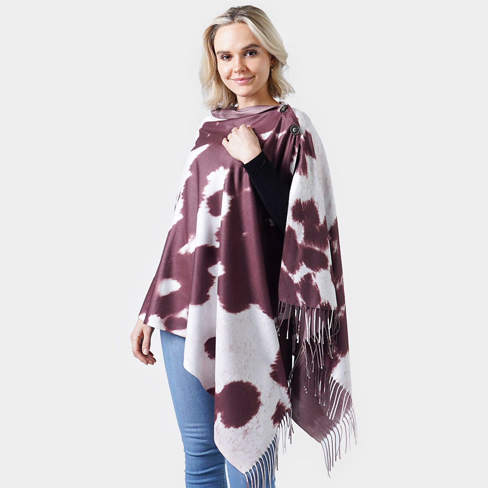 Cheetah Patterned Genuine Leather Angled Pendant Double Layered Necklace
