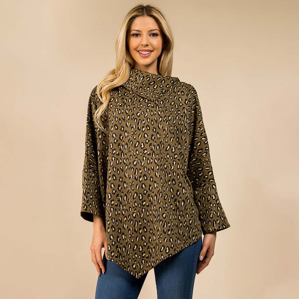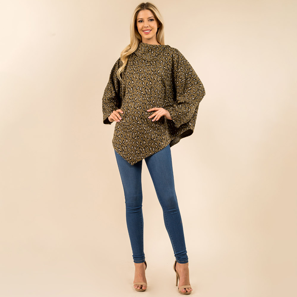Details • Size : One Size • Material : 100% Acrylic • Turn heads in this chic leopard print poncho, perfect for layering during chilly days. With its relaxed fit and soft fabric, this one-size wrap adds effortless elegance and warmth to your everyday style. A versatile piece ideal for casual outings or dressy fall looks.
