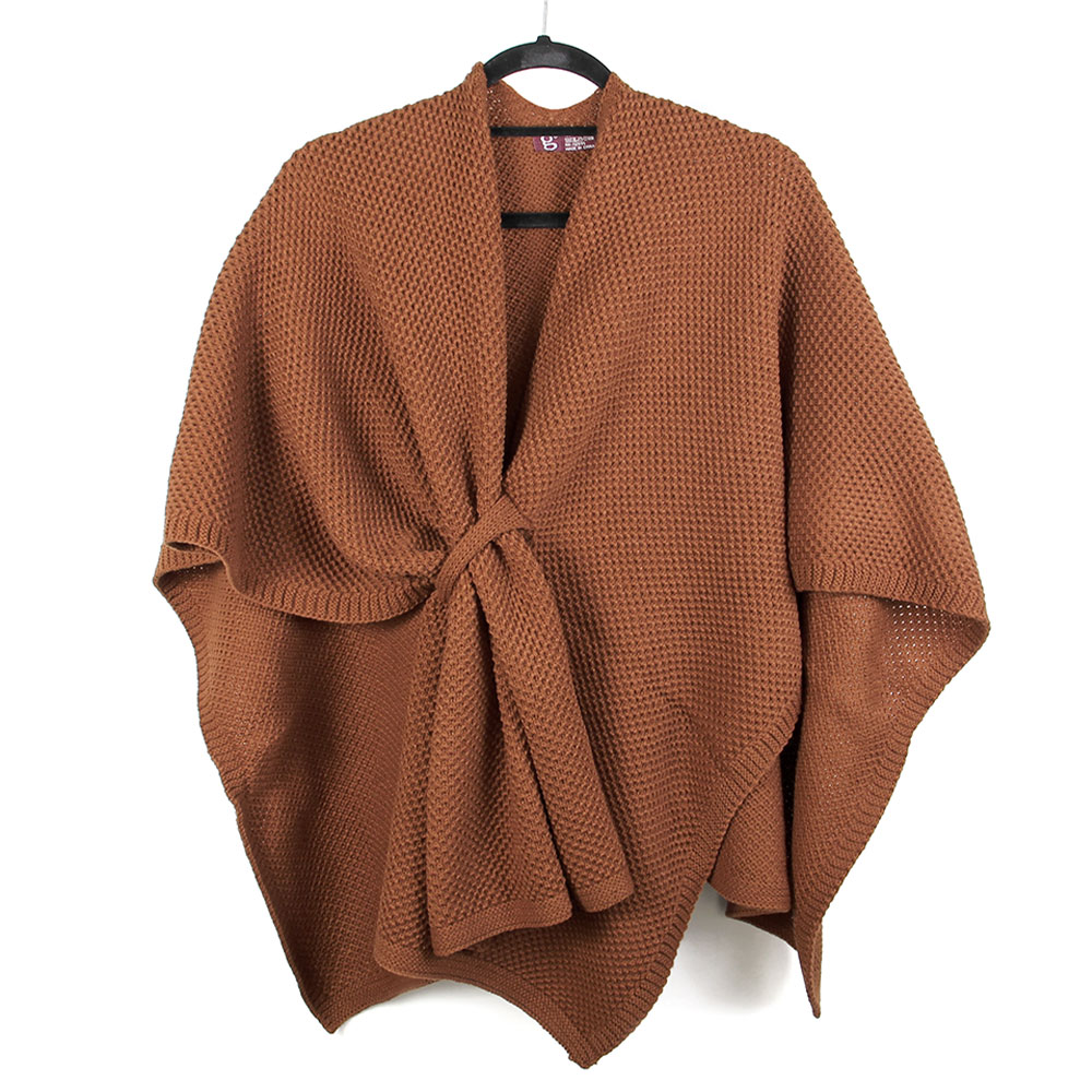 Front Tie Textured Knit Wrap Shawl Poncho Front Tie Textured Knit Wrap Shawl Poncho