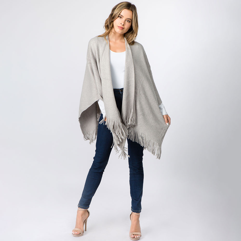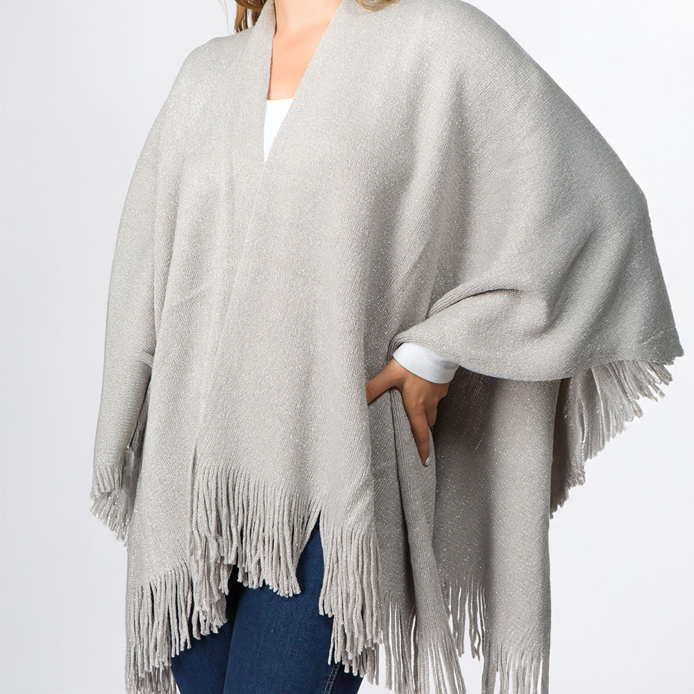 • Elevate your style with this elegant fringe trim wrap shawl. Perfect for layering year-round, it offers cozy comfort and chic flair. Lightweight, versatile, and ideal for casual or dressy looks.