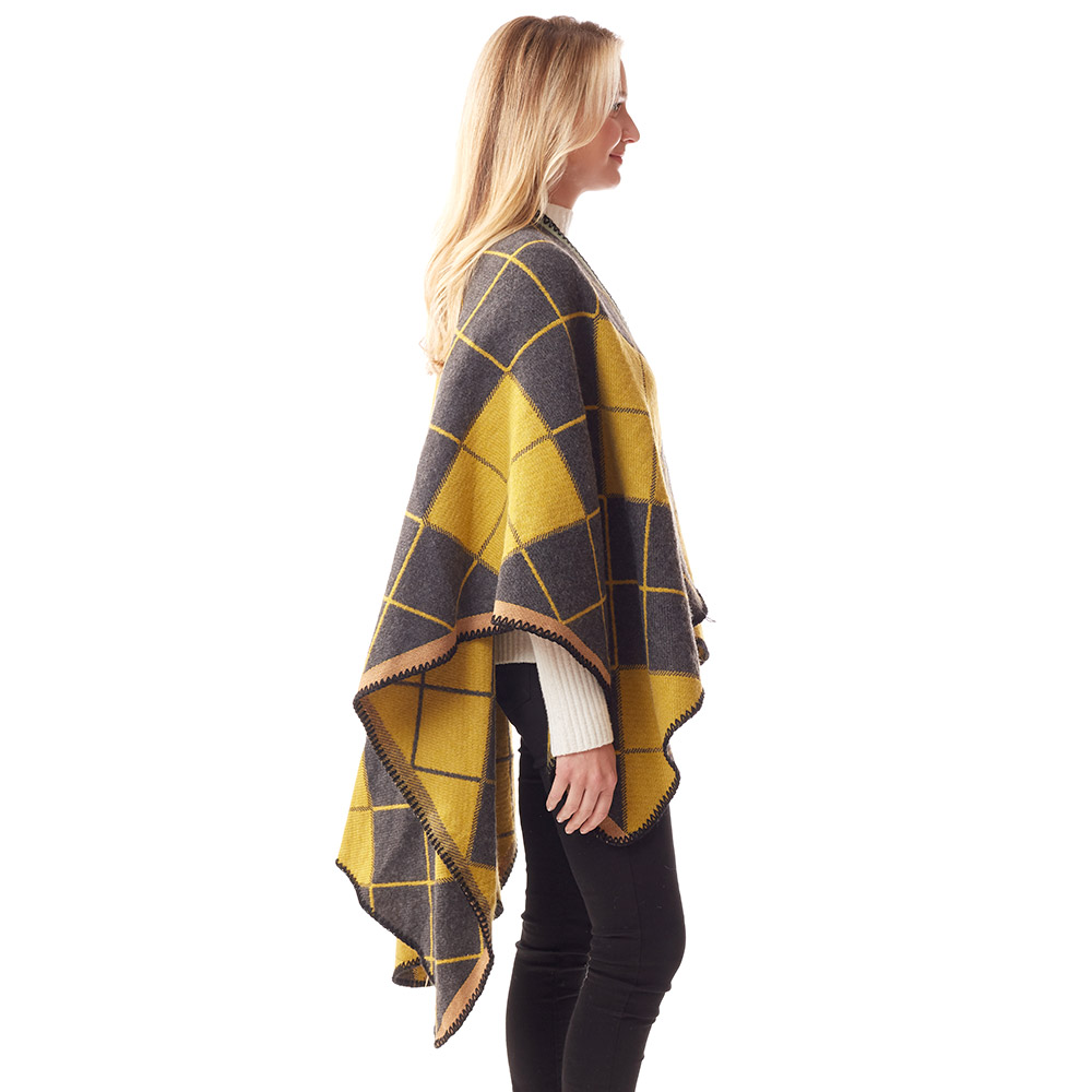 Plaid Check Patterned Stitch Ruana Poncho