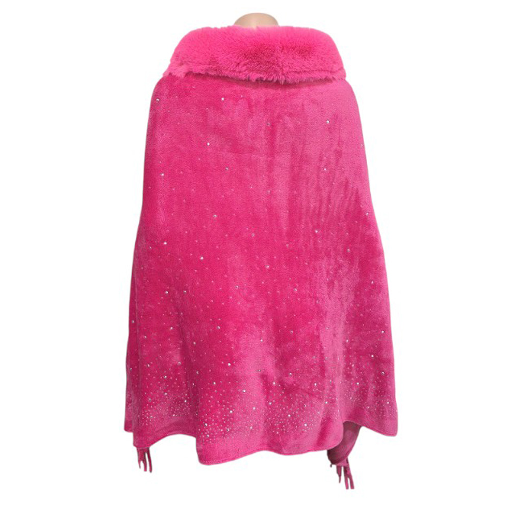 Details • Size : One Size • Material : 100% Polyester • Elegant faux fur shawl wrap featuring soft texture, fringe trim, and subtle rhinestone accents for added sparkle. Perfect for evening events, parties, or cold-weather outings, this luxurious wrap adds warmth and sophistication to any outfit with timeless charm.