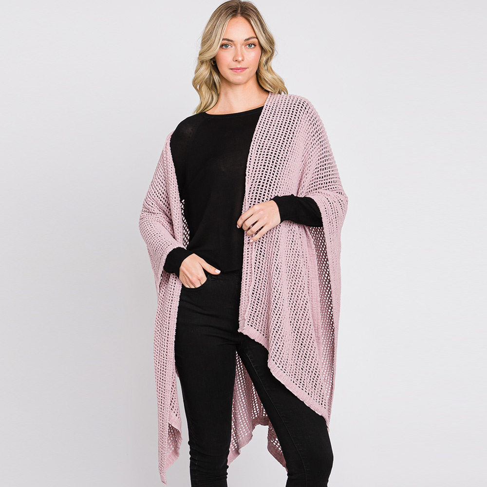 Solid Chenille Crochet Ruana Poncho