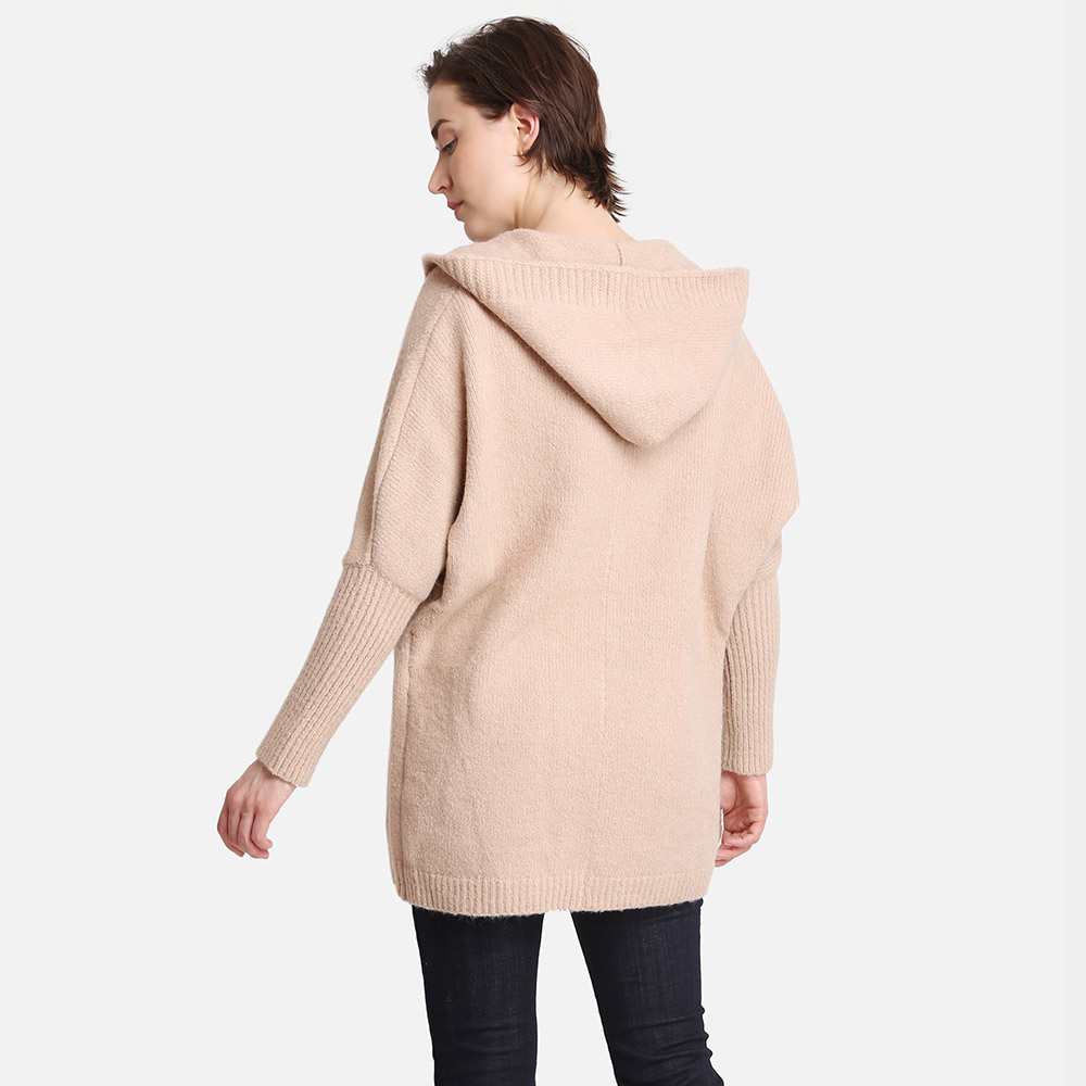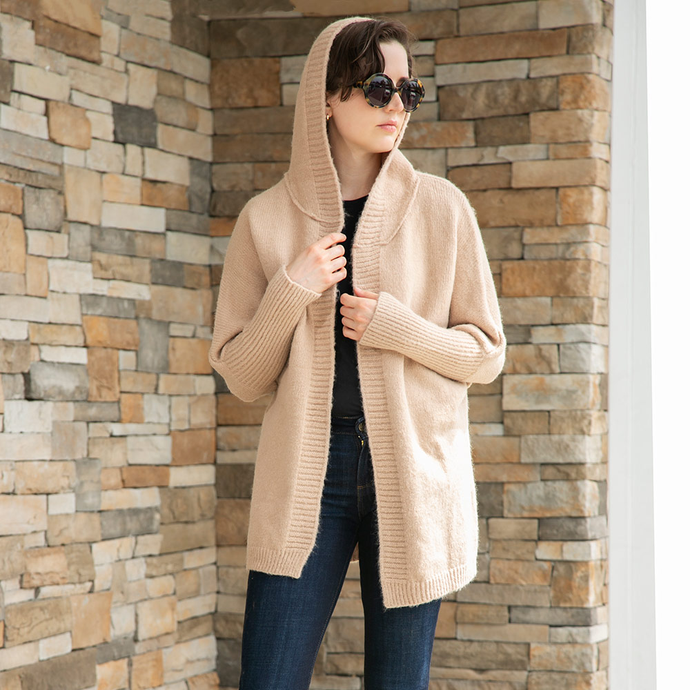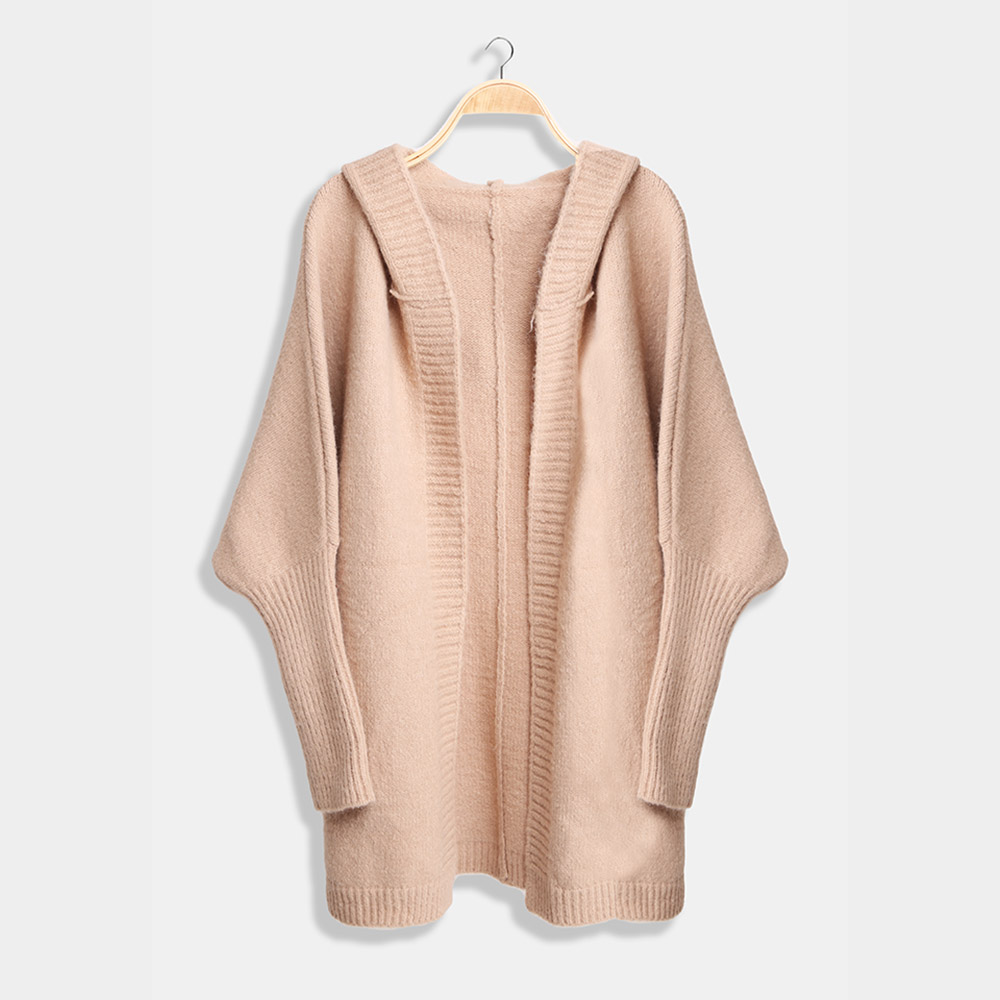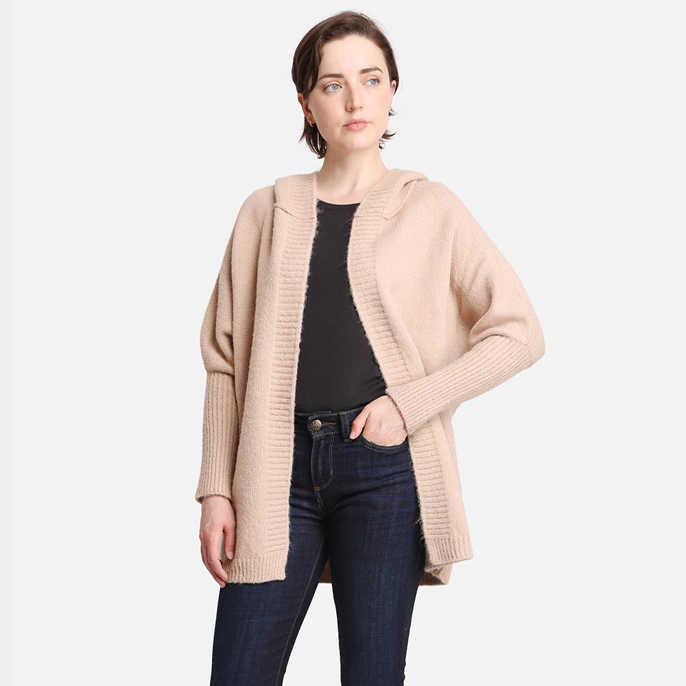 Solid Color Knitted Hood and Ribbed Edges Cardigan