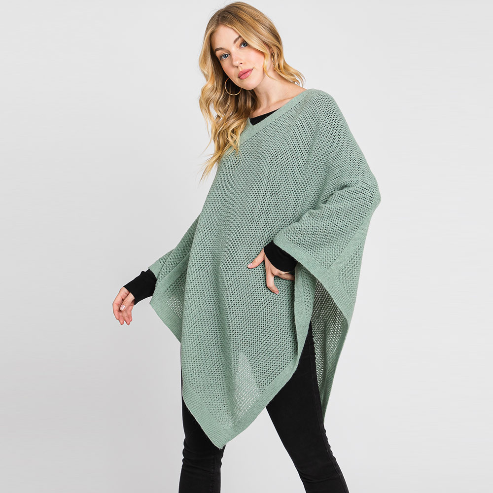 Convertible Button Up Waffle Knit Shawl Cape Poncho
