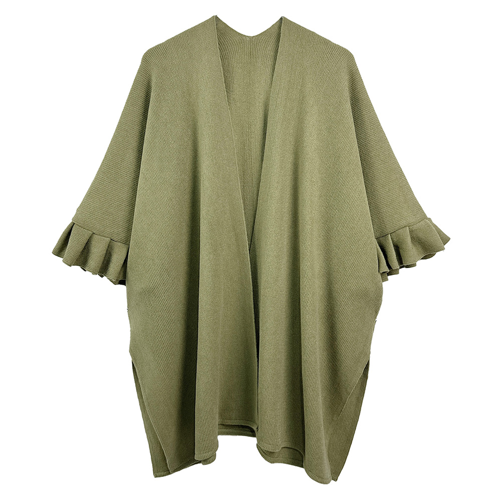 Solid Knit Open Front Ruffled Sleeves Kimono Poncho Solid Knit Open Front Ruffled Sleeves Kimono Poncho