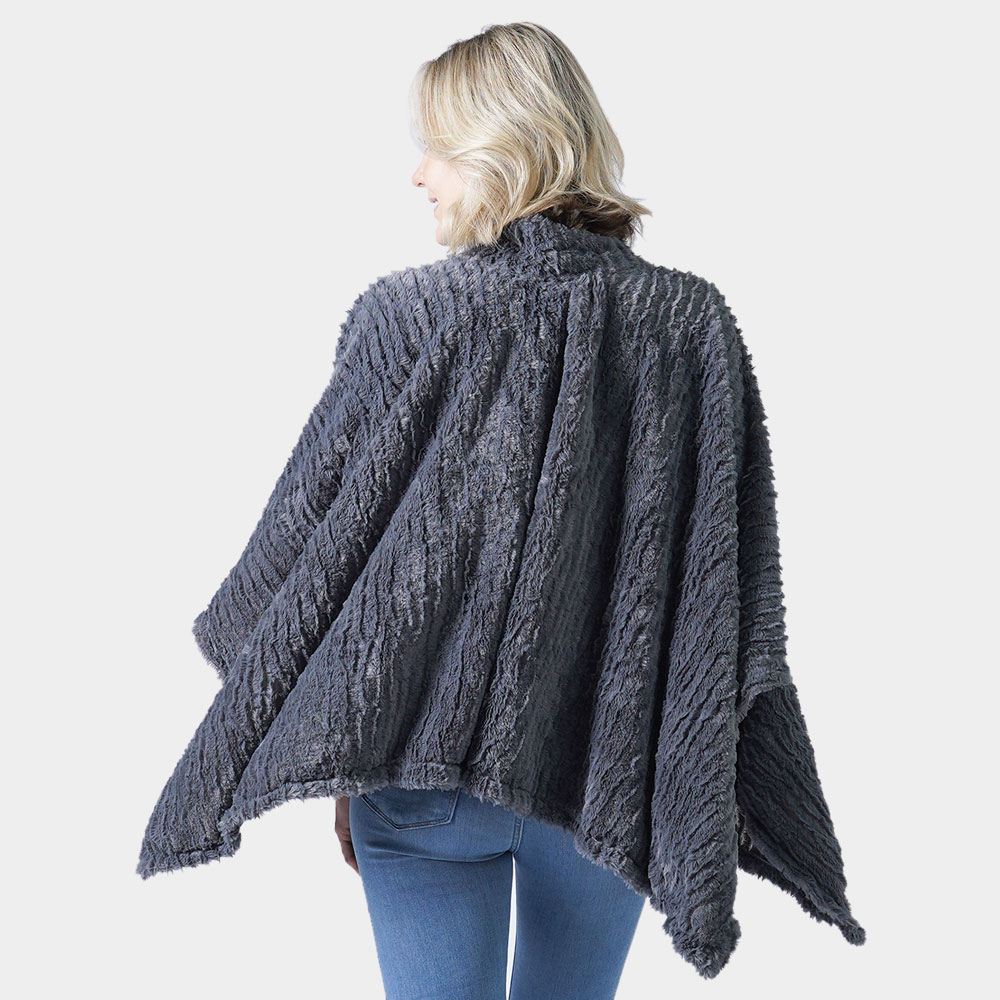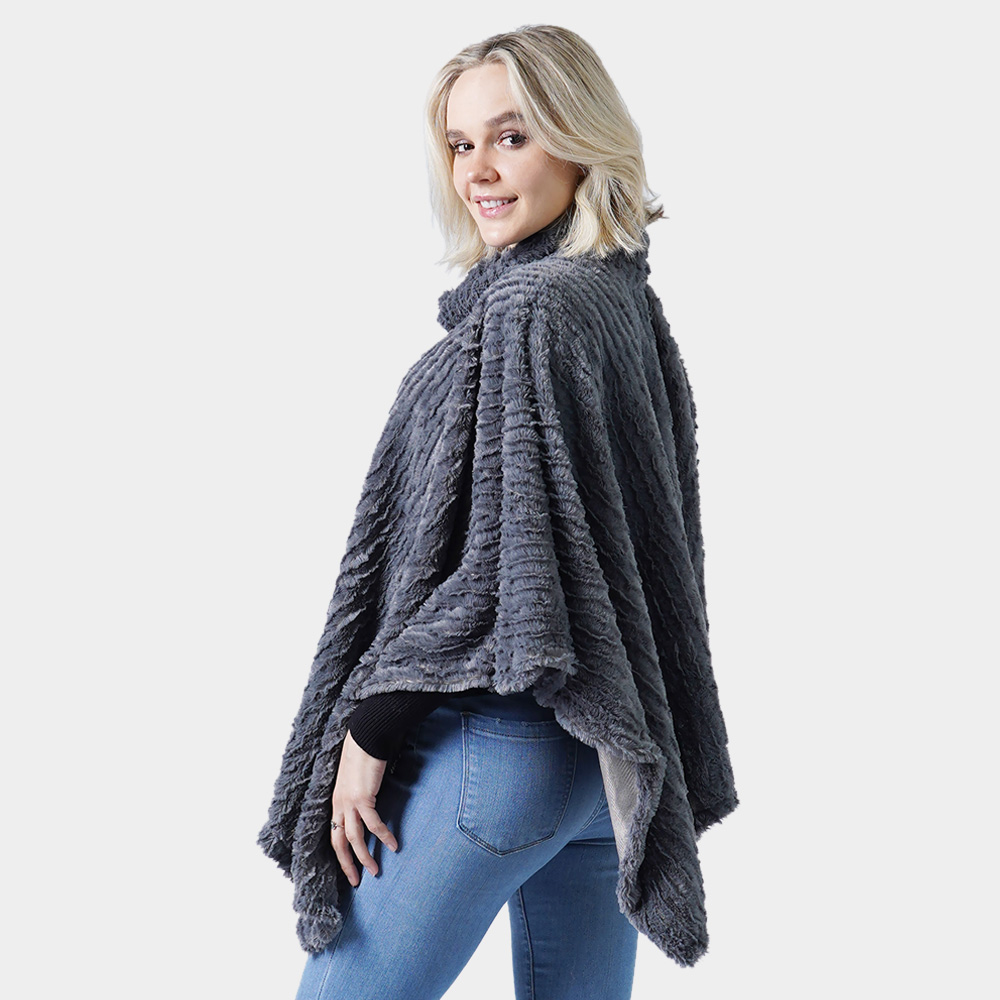 Stripe Pattern Faux Fur Poncho