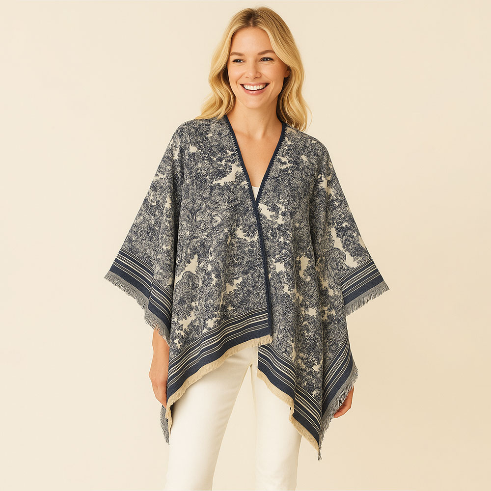 Textured Jacquard Pattern Print Ruana Poncho Textured Jacquard Pattern Print Ruana Poncho Textured Jacquard Pattern Print Ruana Poncho