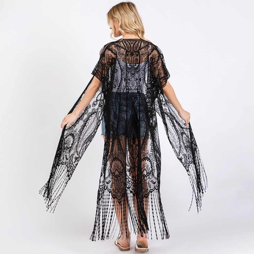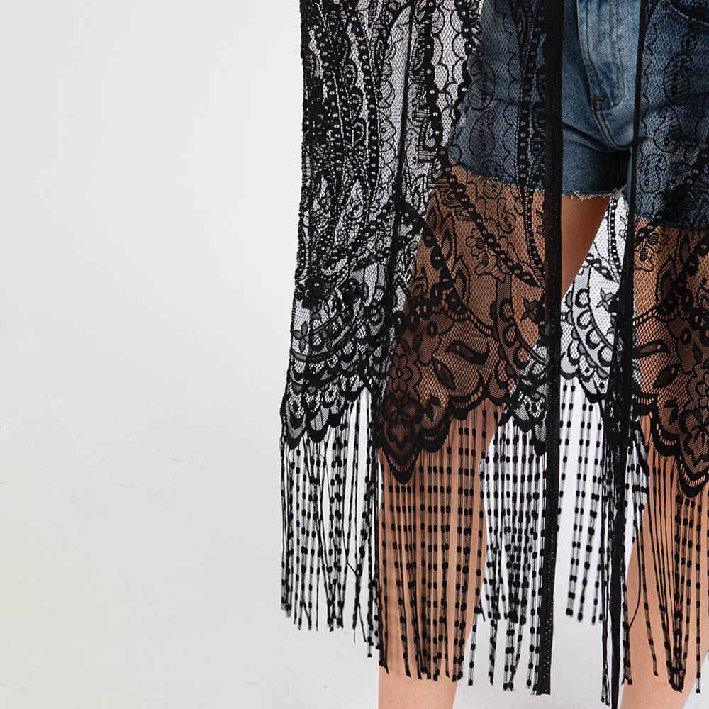 Elegant Lace Fringe Cover Up Kimono Poncho