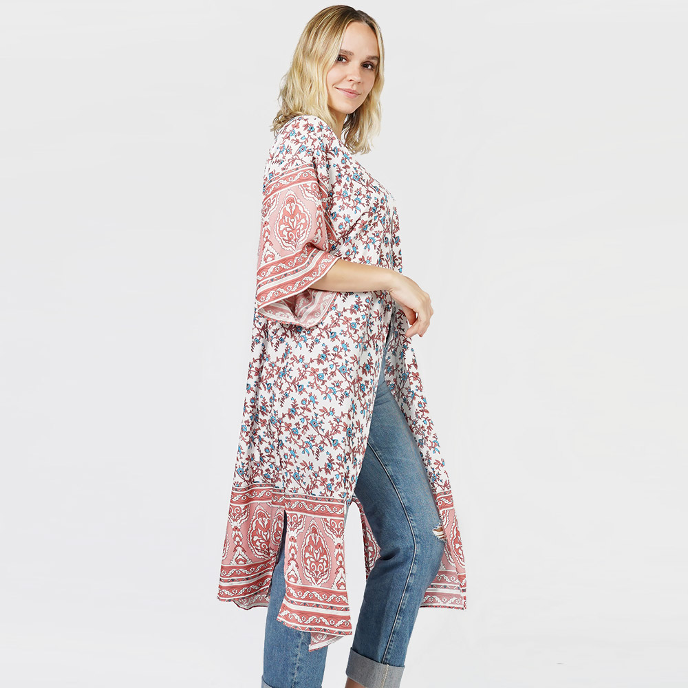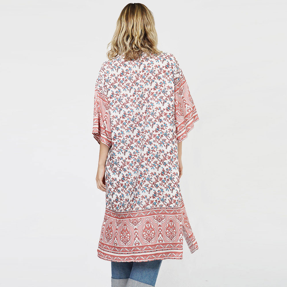 Cozy Relaxed Fit Open Front Floral Pattern Poncho