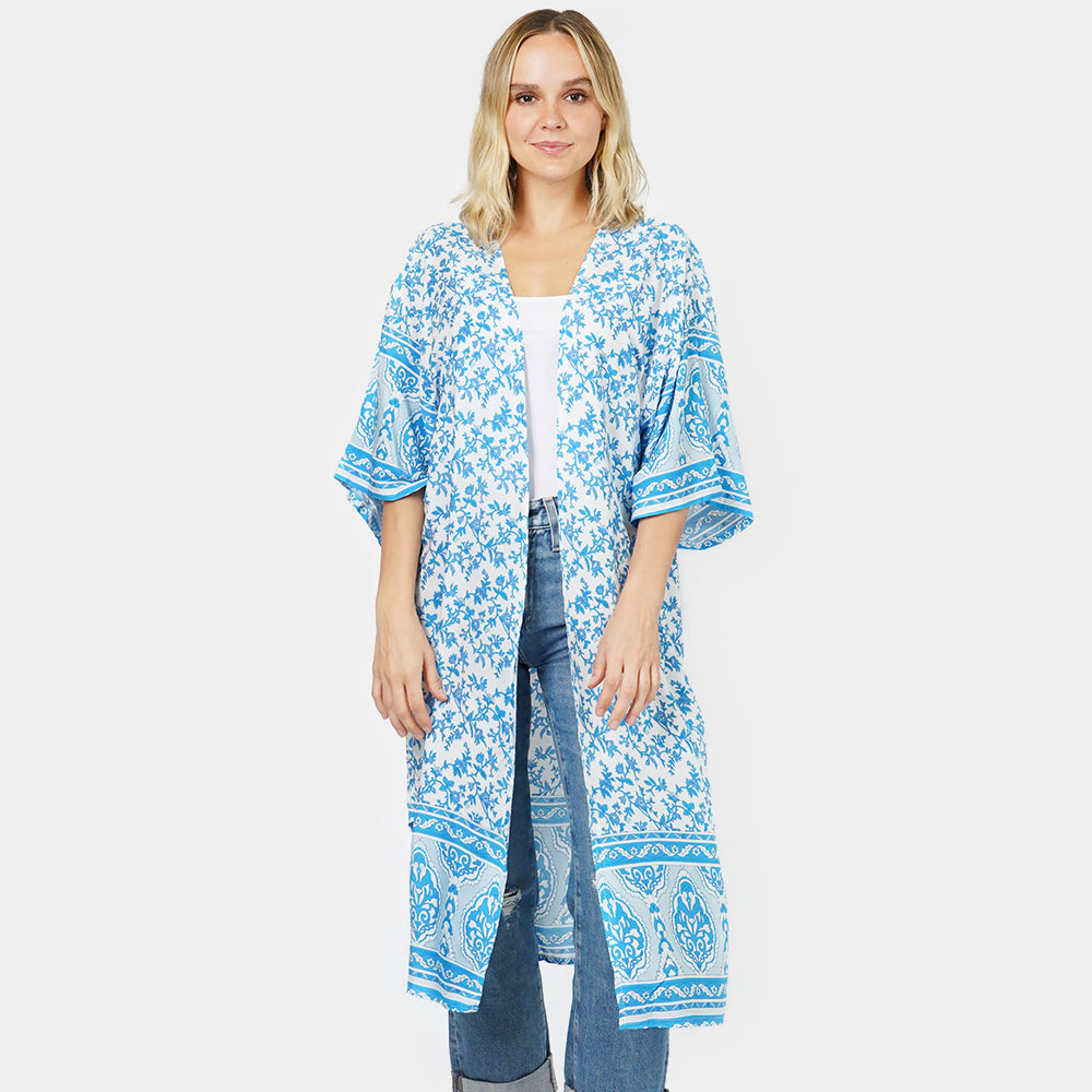 Floral Patterned Cover Up Kimono Poncho