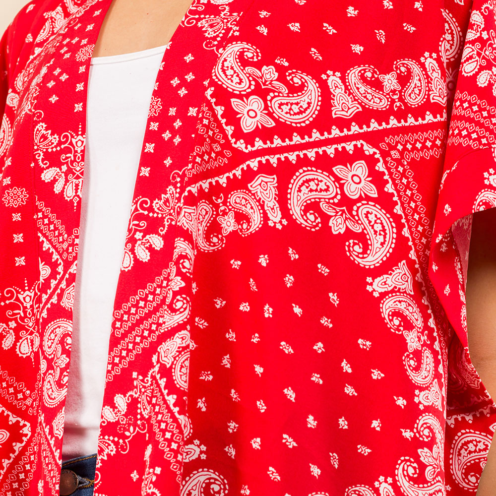 Details • Size : One Size • Material : 100% Polyester • Add a boho-chic flair with this paisley kimono cardigan. Featuring a lightweight, flowy fit and elegant paisley print, it's perfect for layering over casual outfits or beachwear. Stylish comfort for every season.