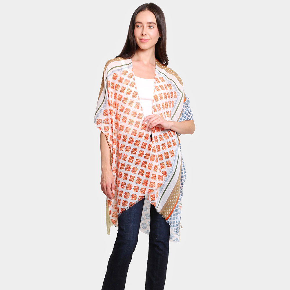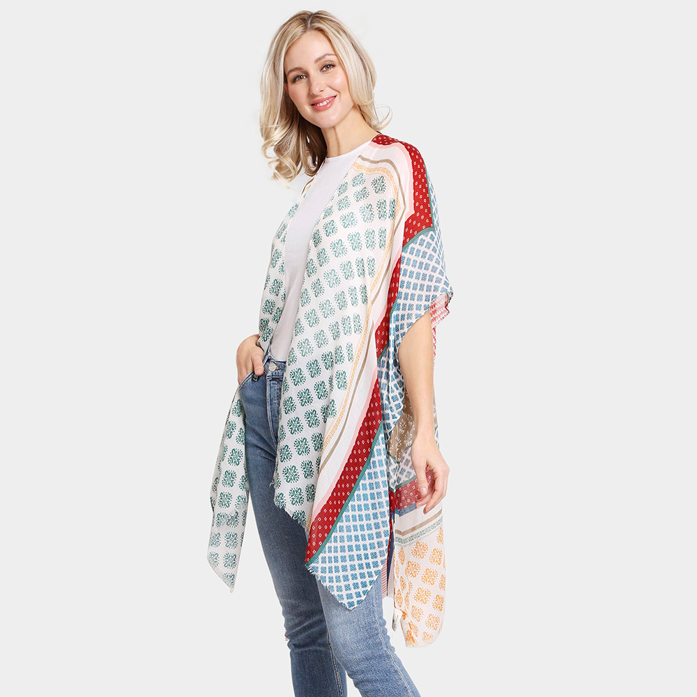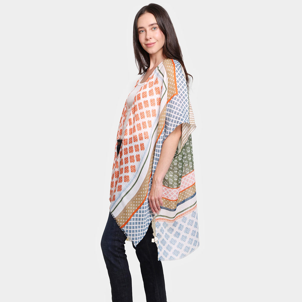 Multi Patterned Cover Up Kimono Poncho