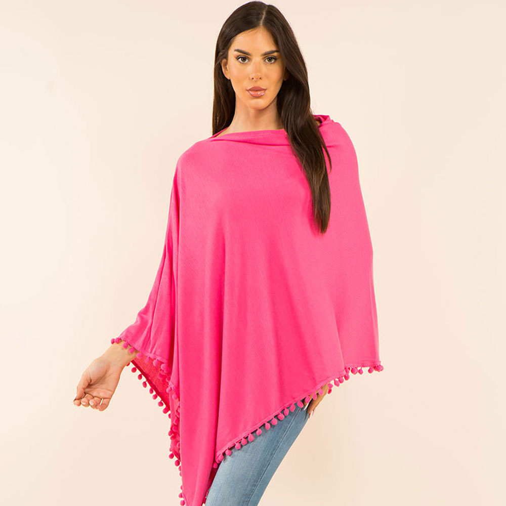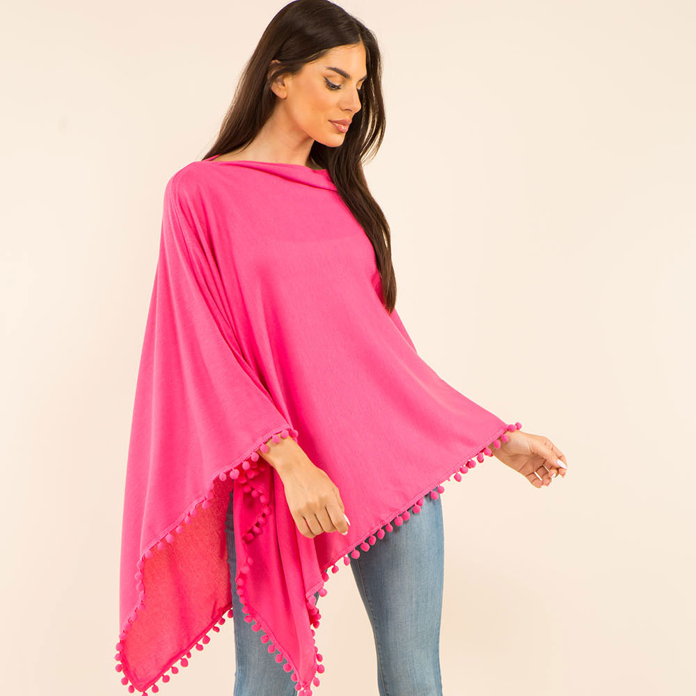 Pom Pom Trim Solid Asymmetrical Poncho Pom Pom Trim Solid Asymmetrical Poncho Pom Pom Trim Solid Asymmetrical Poncho