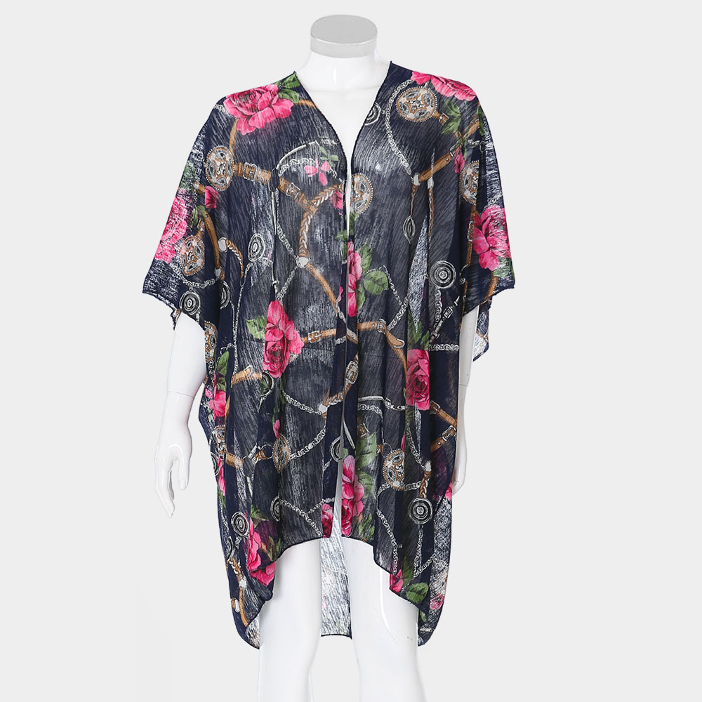 Rose Flower Chain Print Cover Up Poncho