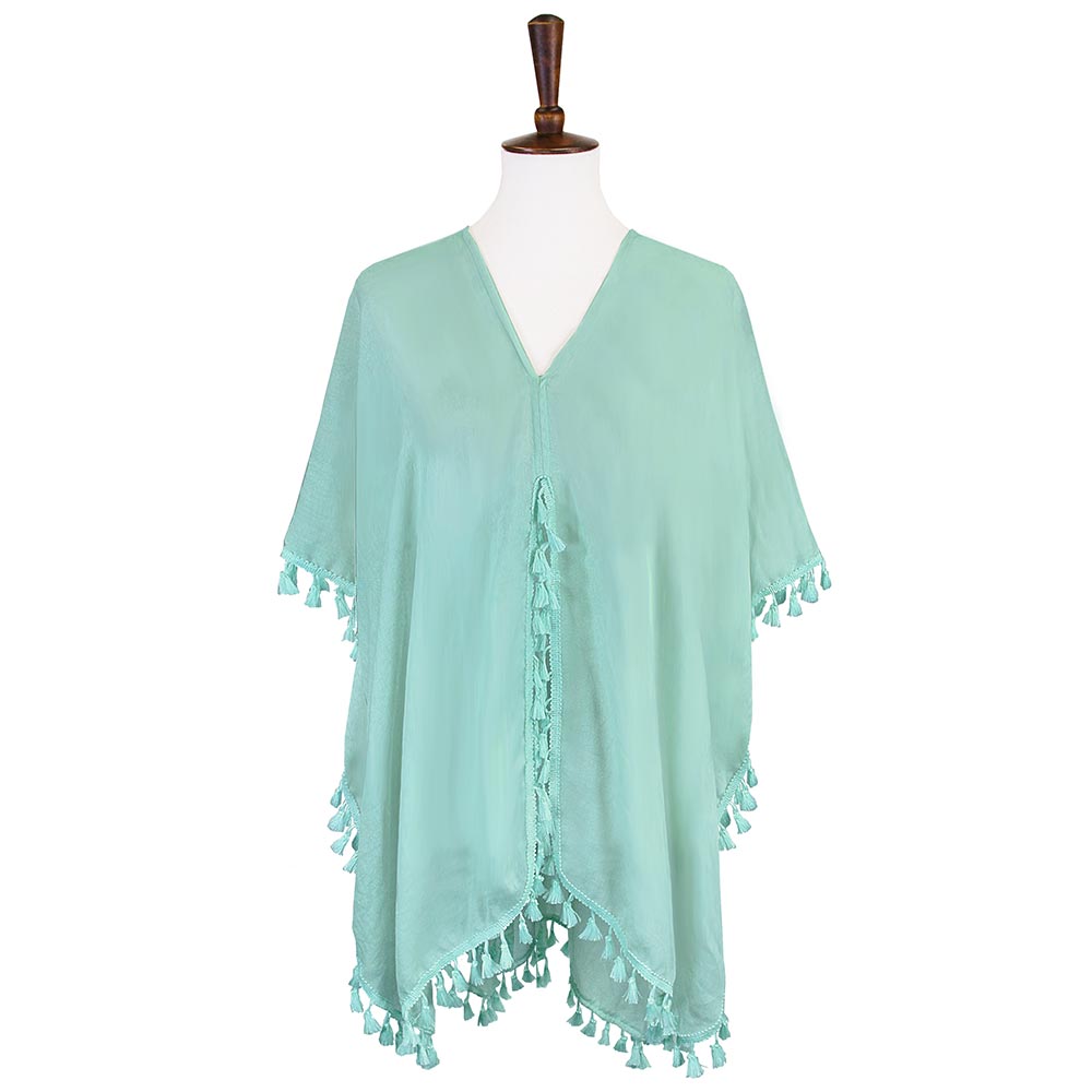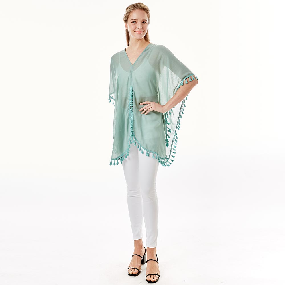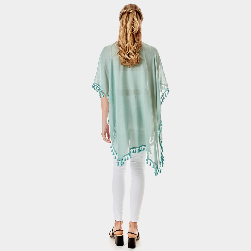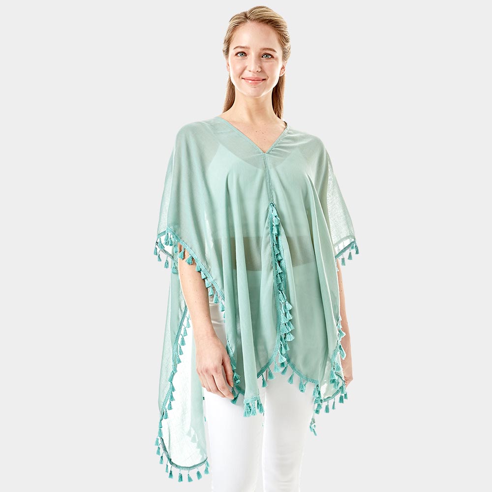 Hooded Plaid Check Patterned Front Pockets Fringe Ruana Poncho