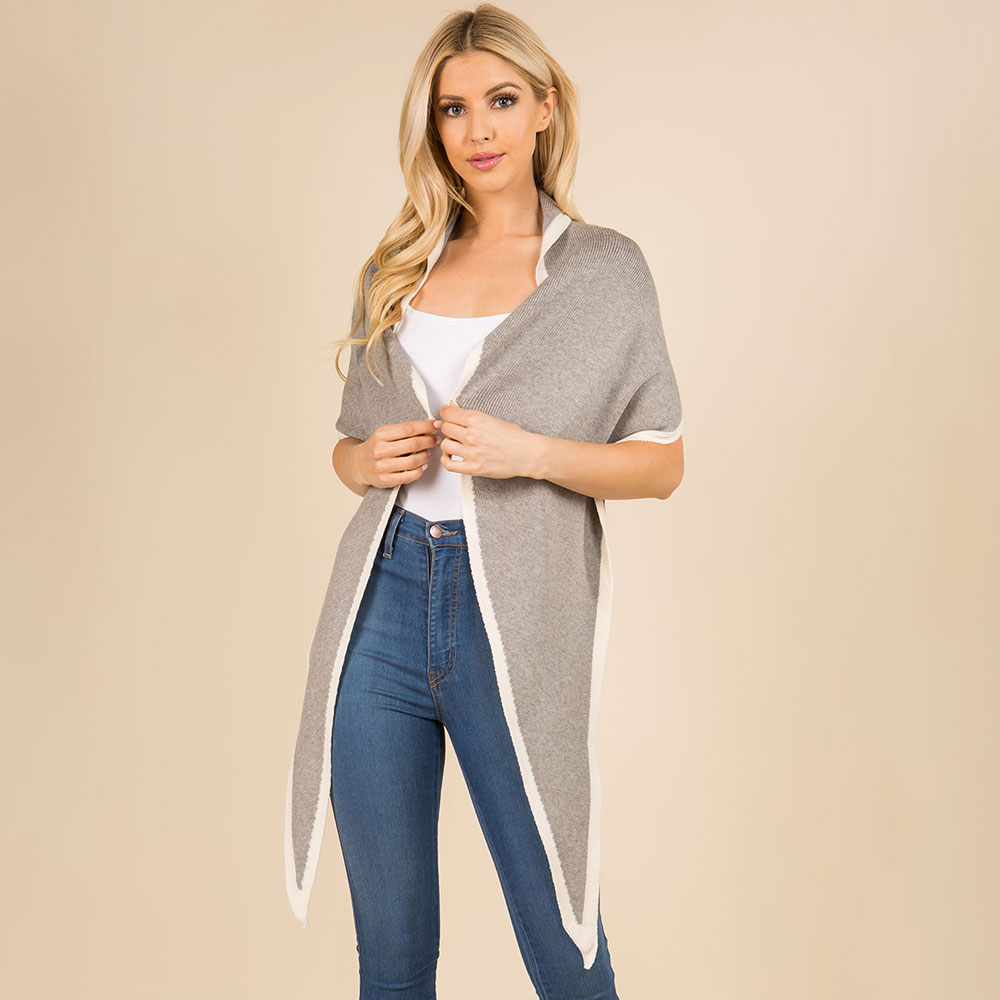 Contrast Trim Open Front Knit Wrap Shawl Poncho Scarf