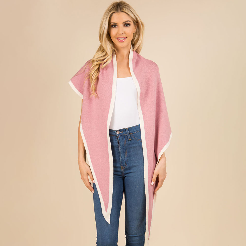 Contrast Trim Open Front Knit Wrap Shawl Poncho Scarf