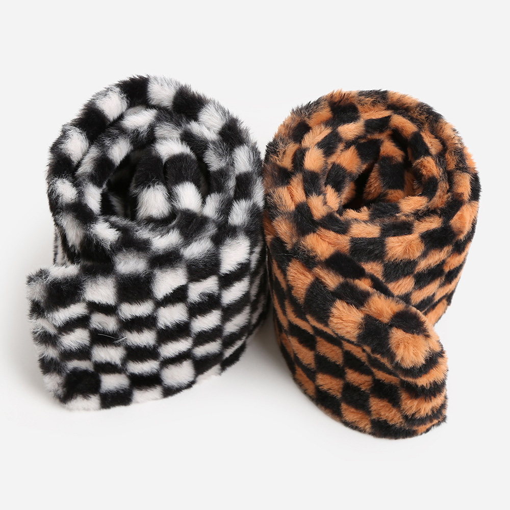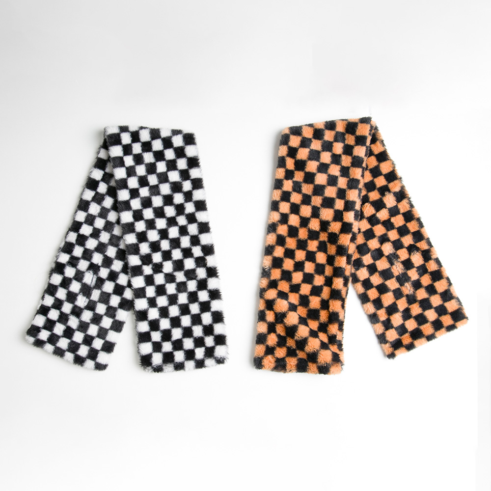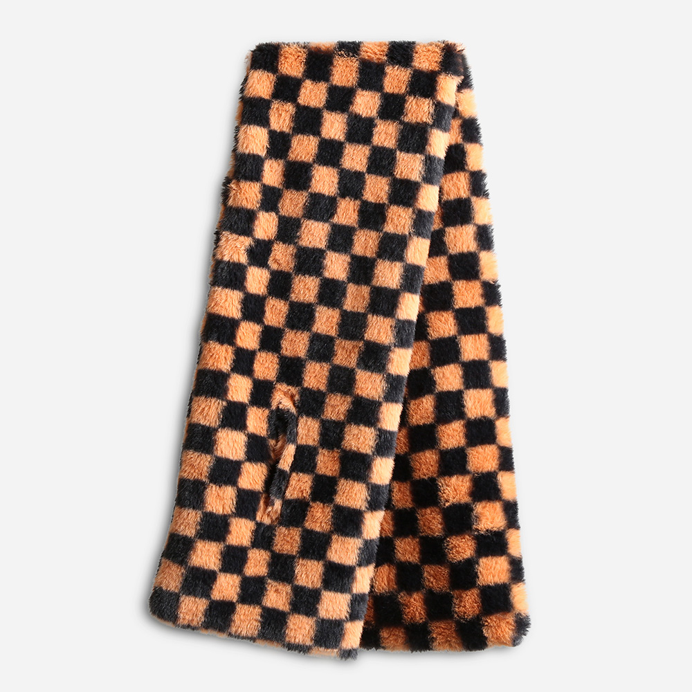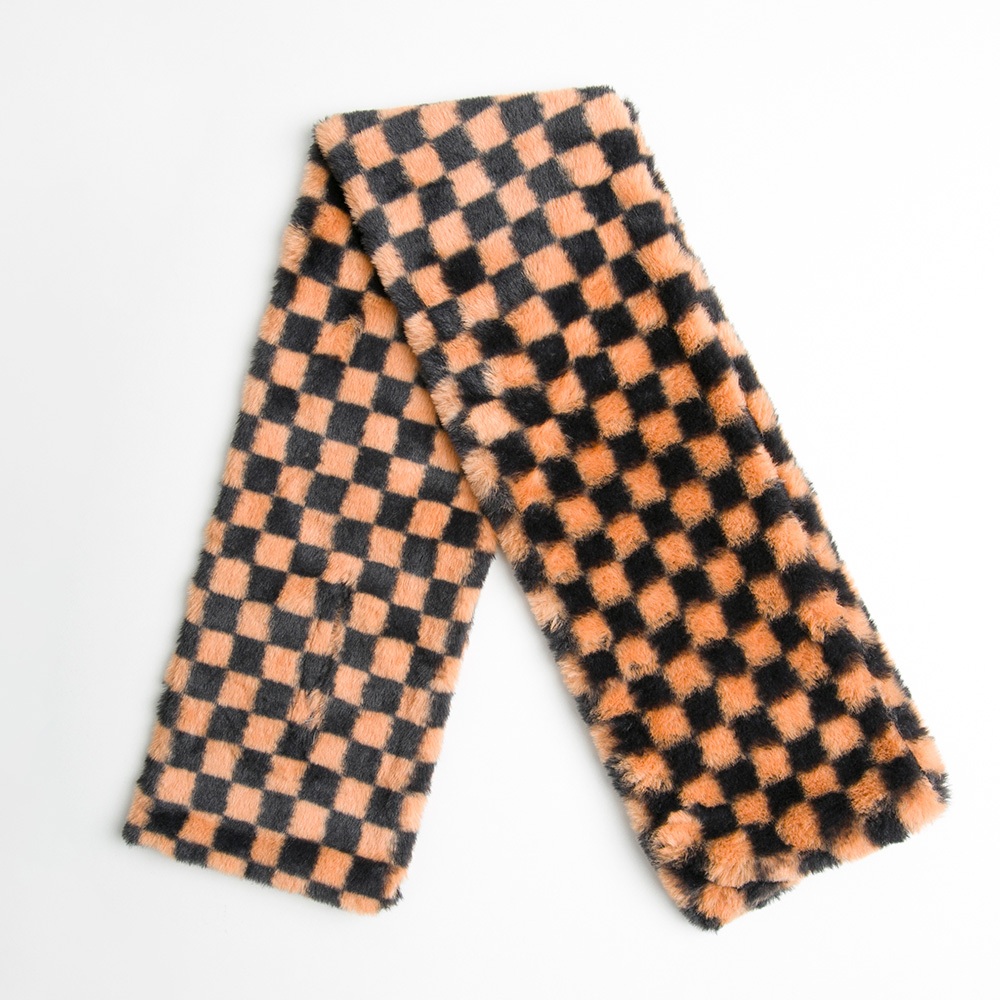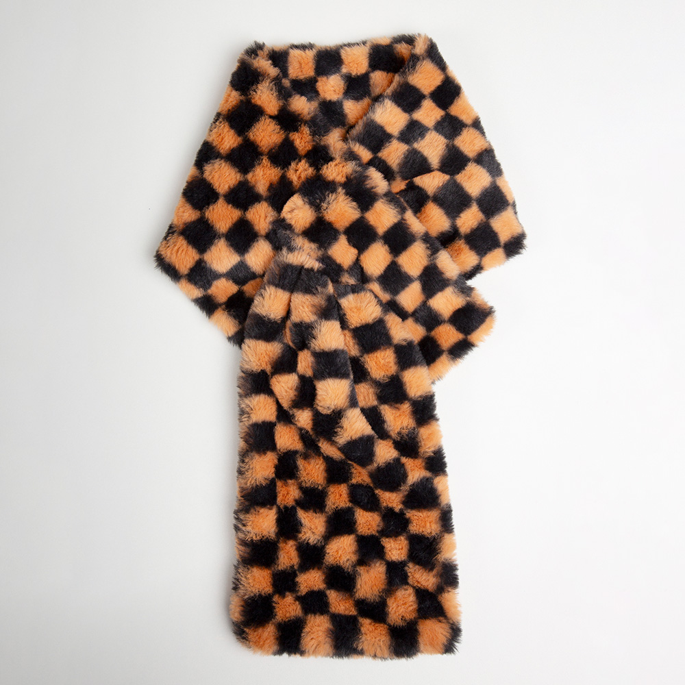 • Trendy faux fur scarf featuring a bold checkered pattern that adds modern flair to any outfit. Soft, cozy, and fashionable, this accessory is perfect for elevating casual or chic ensembles with a touch of statement style.