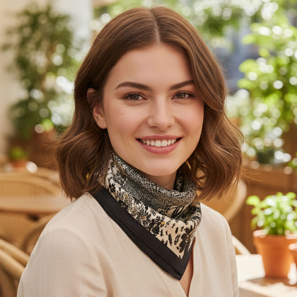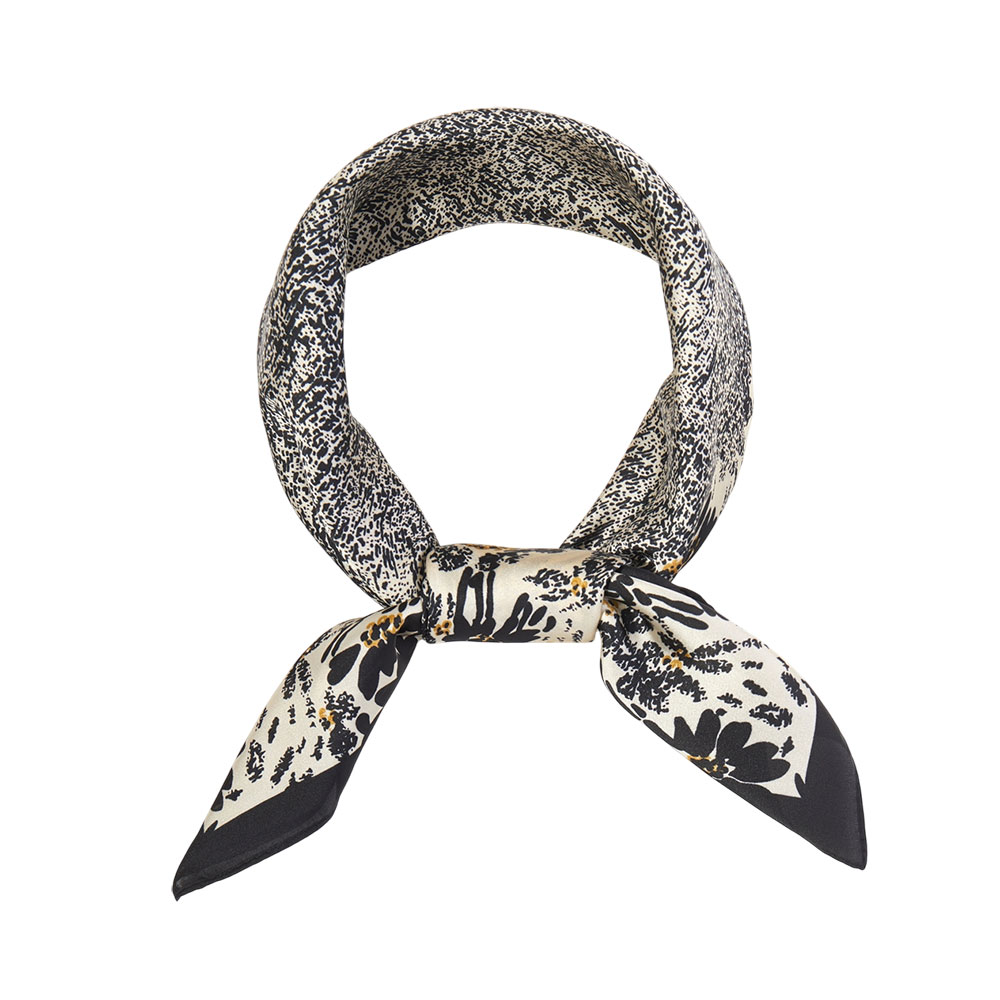 • Elevate everyday looks with this floral border print square scarf, featuring a detailed botanical pattern that blends modern style with timeless elegance. Its soft drape makes it perfect for styling as a neck scarf, hair accessory, or tied on a handbag. A versatile fashion accent ideal for workwear, weekend outfits, gifting, and travel-ready accessorizing.