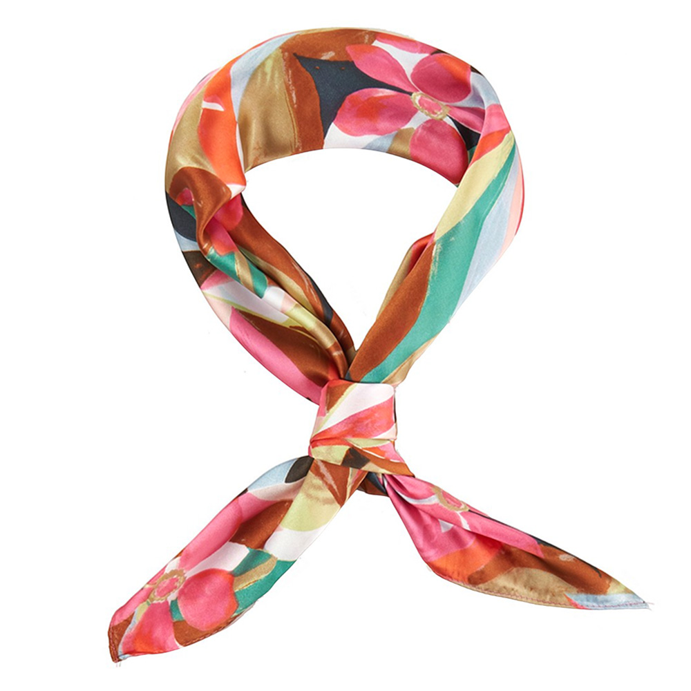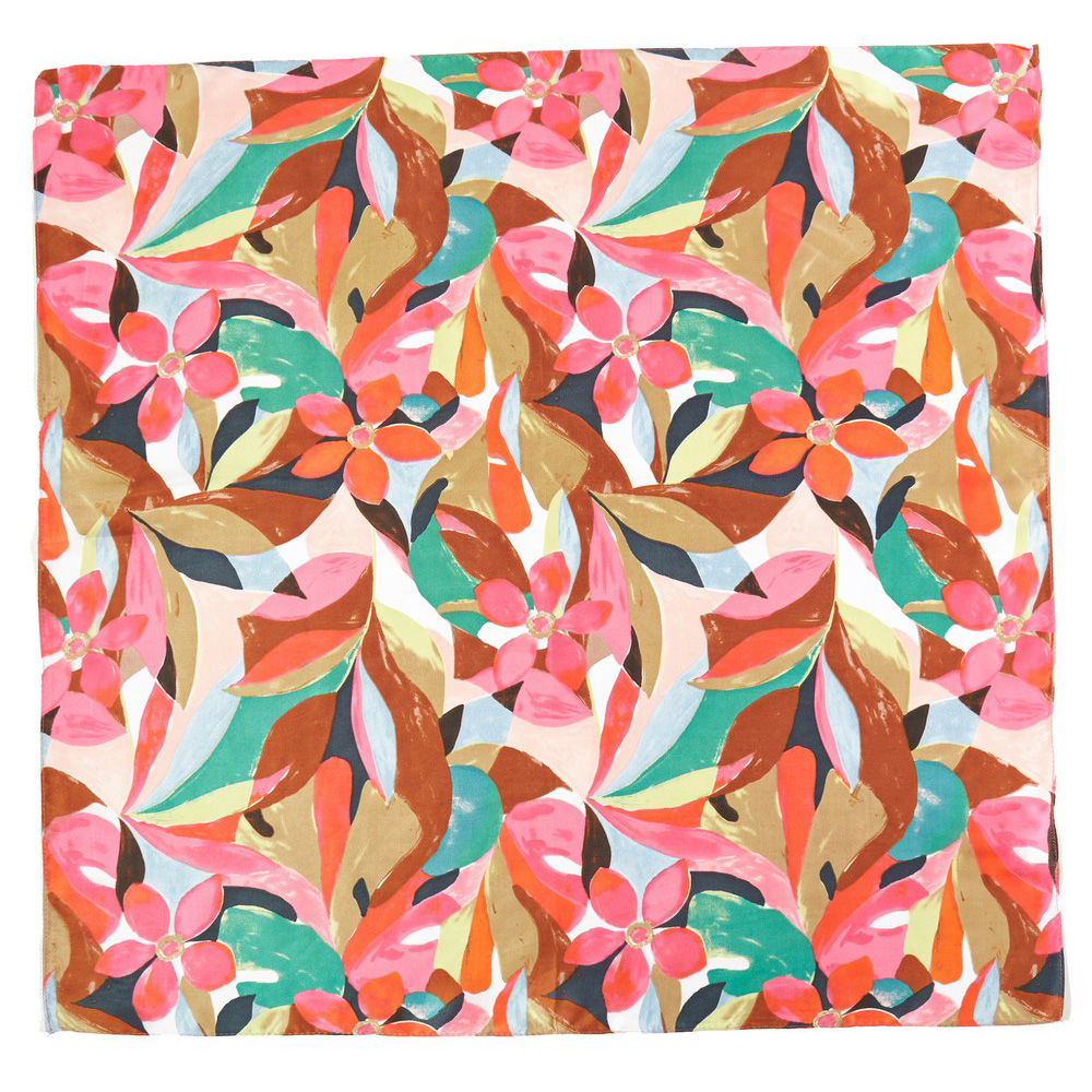 Abstract Tropical Bloom Printed Square Silky Satin Scarf