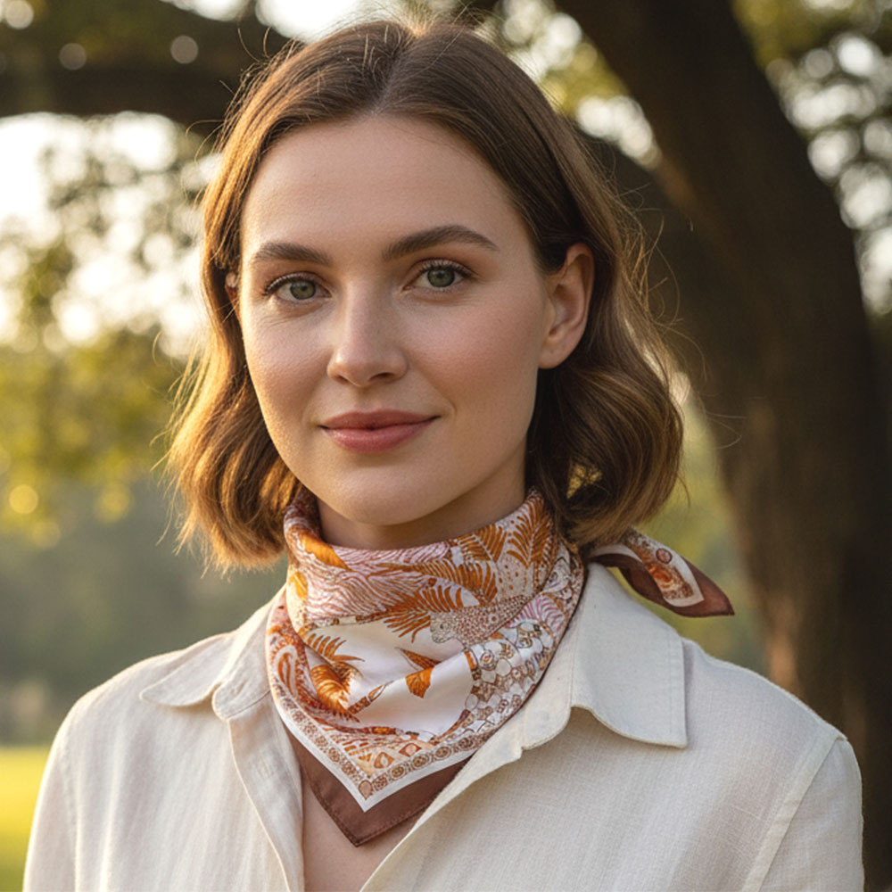 • Chic square fashion scarf featuring a tropical leopard and palm motif with smooth, lightweight drape for versatile styling. Perfect as a neck scarf, hair accessory, or handbag accent, adding an exotic and stylish touch to everyday outfits, travel looks, and special occasions. A trendy gift for fashion lovers.