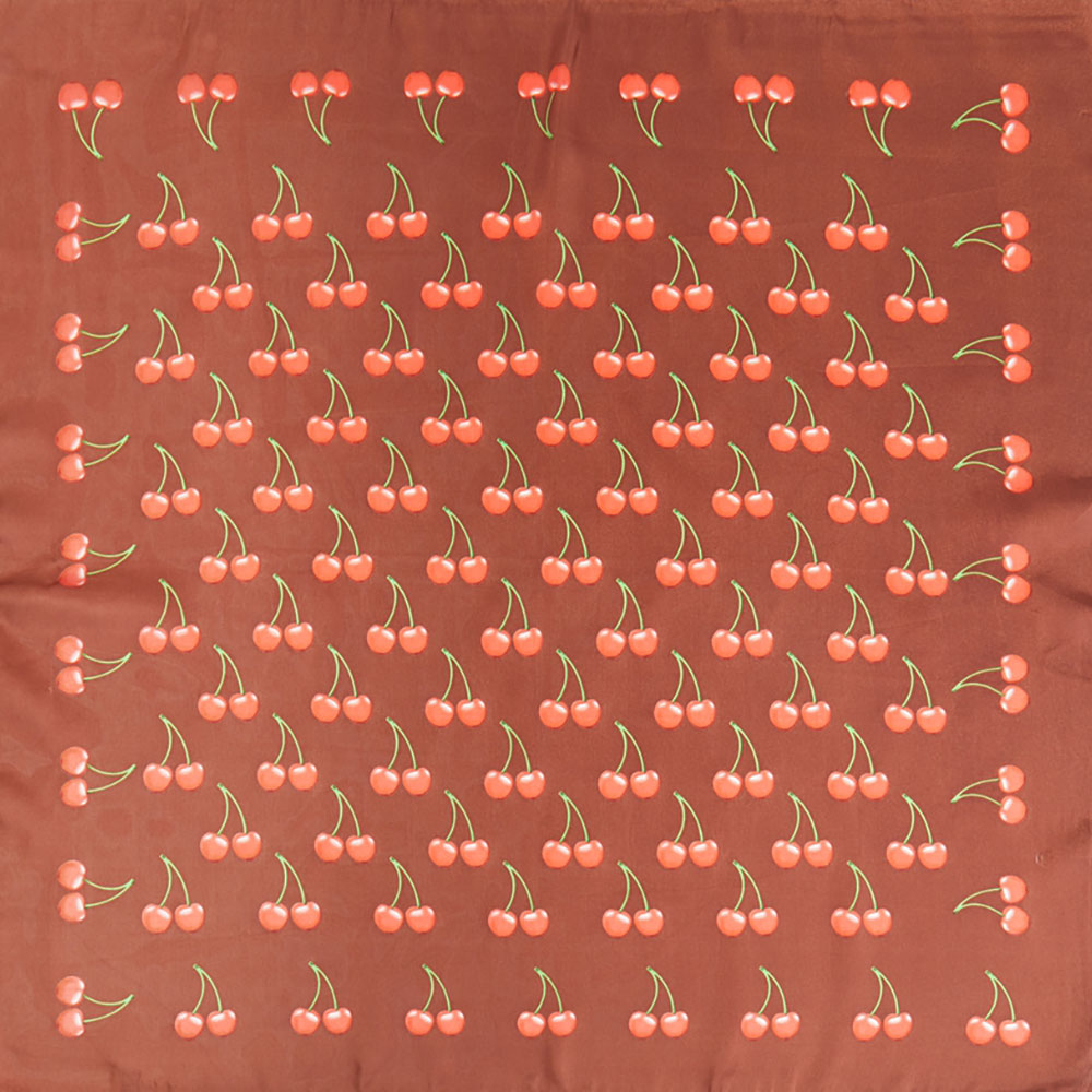 Details • Size : 27.5" X 27.5" • Material : 100% Polyester • Add a fun, playful accent to any outfit with this cherry print square scarf featuring a repeating fruit pattern that brings a charming retro vibe. Lightweight and soft, it’s perfect to wear as a neck scarf, hair accessory, or tied to a handbag. A stylish way to elevate everyday looks, from casual outings to special occasions.
