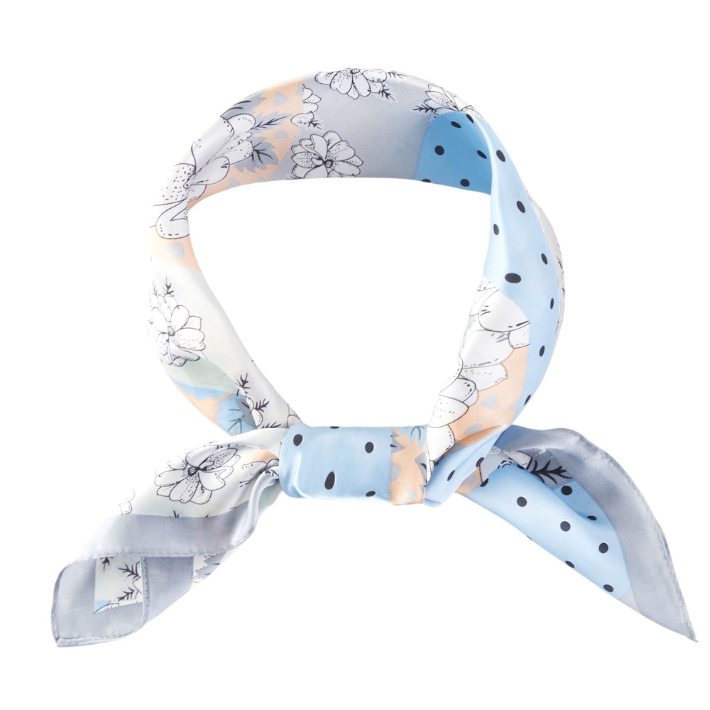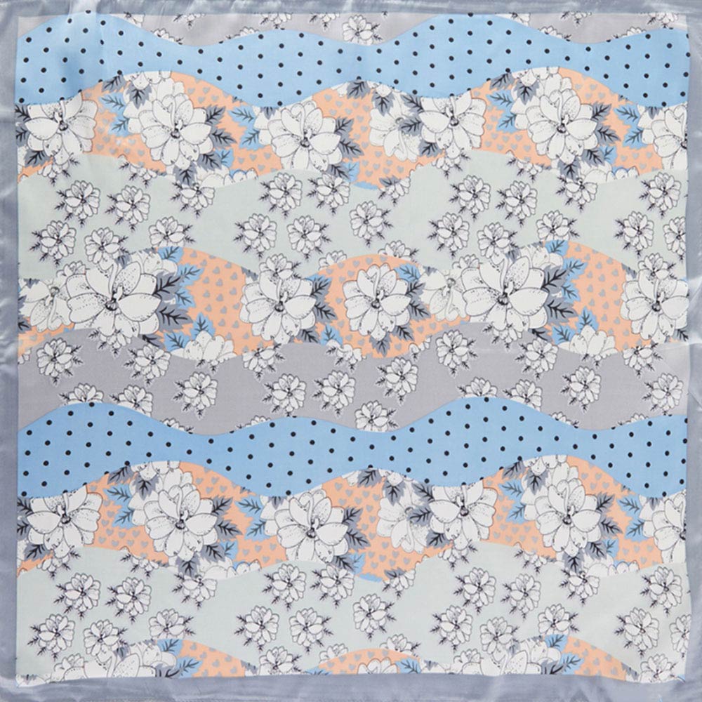 • This square scarf showcases a charming patchwork of floral motifs and playful dotted accents, offering a soft, artistic look. Lightweight and versatile, it adds a refined touch to everyday outfits, perfect for styling around the neck, hair, or as an accessory on bags.