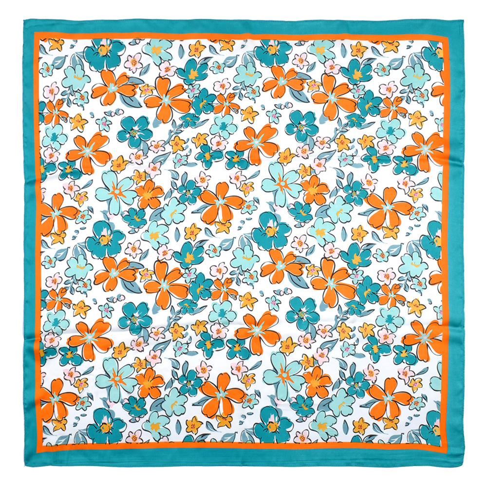Flower Drawing Printed Square Silky Satin Bandana Scarf Flower Drawing Printed Square Silky Satin Bandana Scarf
