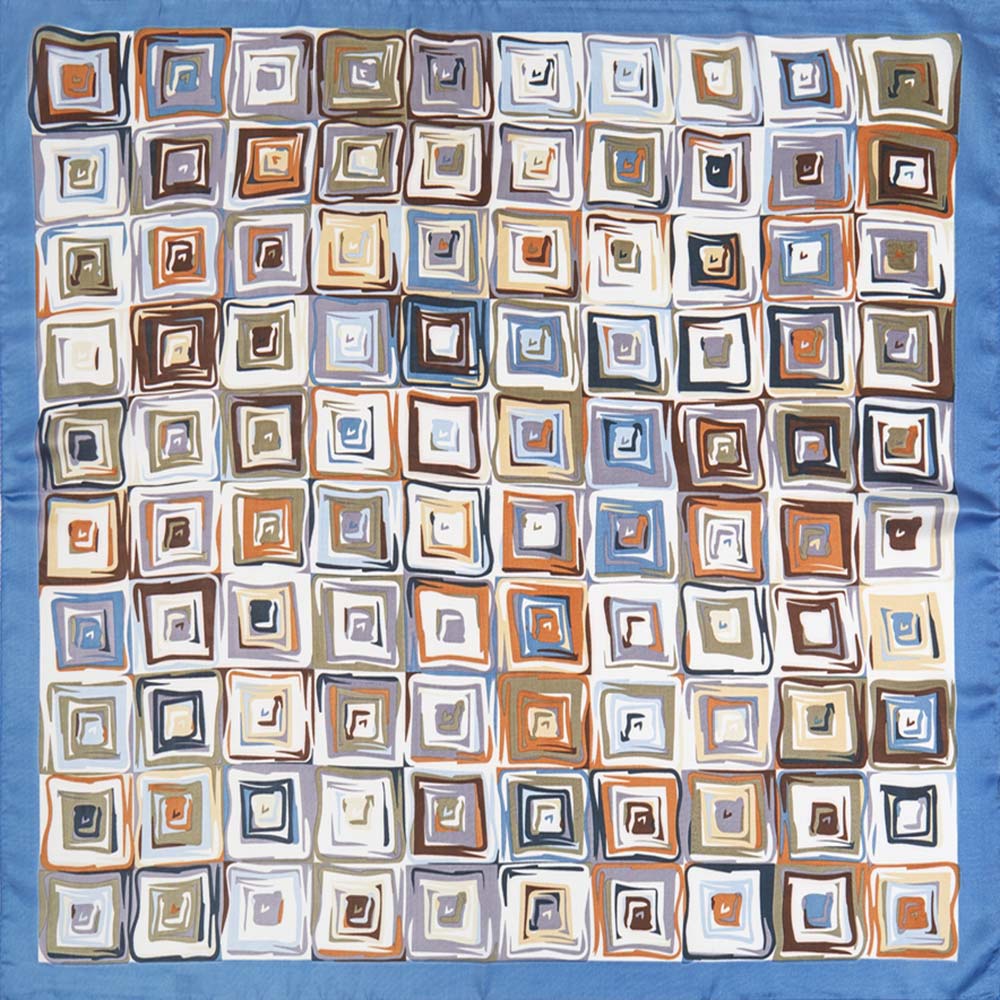 • Modern geometric print scarf featuring layered square motifs with an artistic abstract style. This versatile accessory can be worn as a neck scarf, head scarf, hair tie, or wrapped on a handbag for a chic finishing touch. Lightweight and easy to style for travel, work, weekends, and gifting. A stylish way to elevate everyday outfits with a unique patterned design.