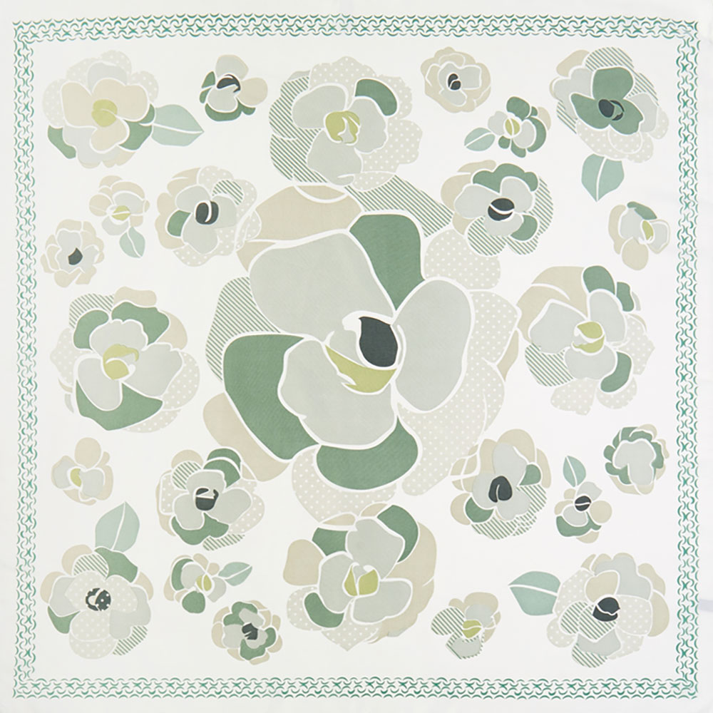 Illustrated Flower Pattern Printed Square Silky Satin Bandana Scarf