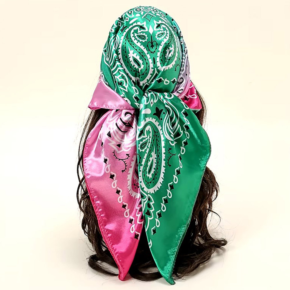 Paisley Pattern Printed Square Silky Satin Scarf Shawl