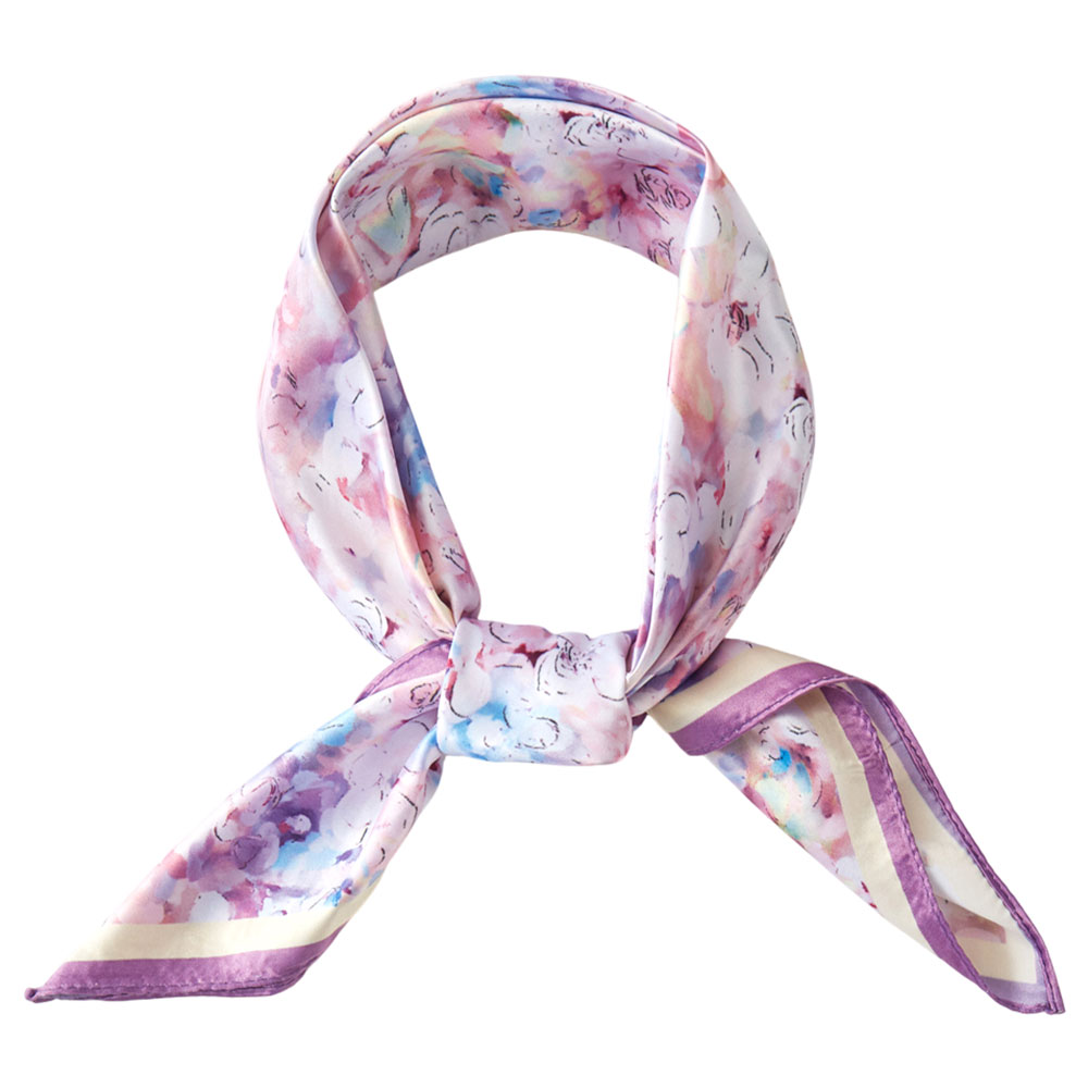 • This square scarf showcases a dreamy watercolor floral pattern that adds an elegant, artistic touch to any outfit. Its lightweight feel and versatile design make it perfect for styling as a neck scarf, hair accessory, or handbag accent, enhancing everyday looks with effortless charm.