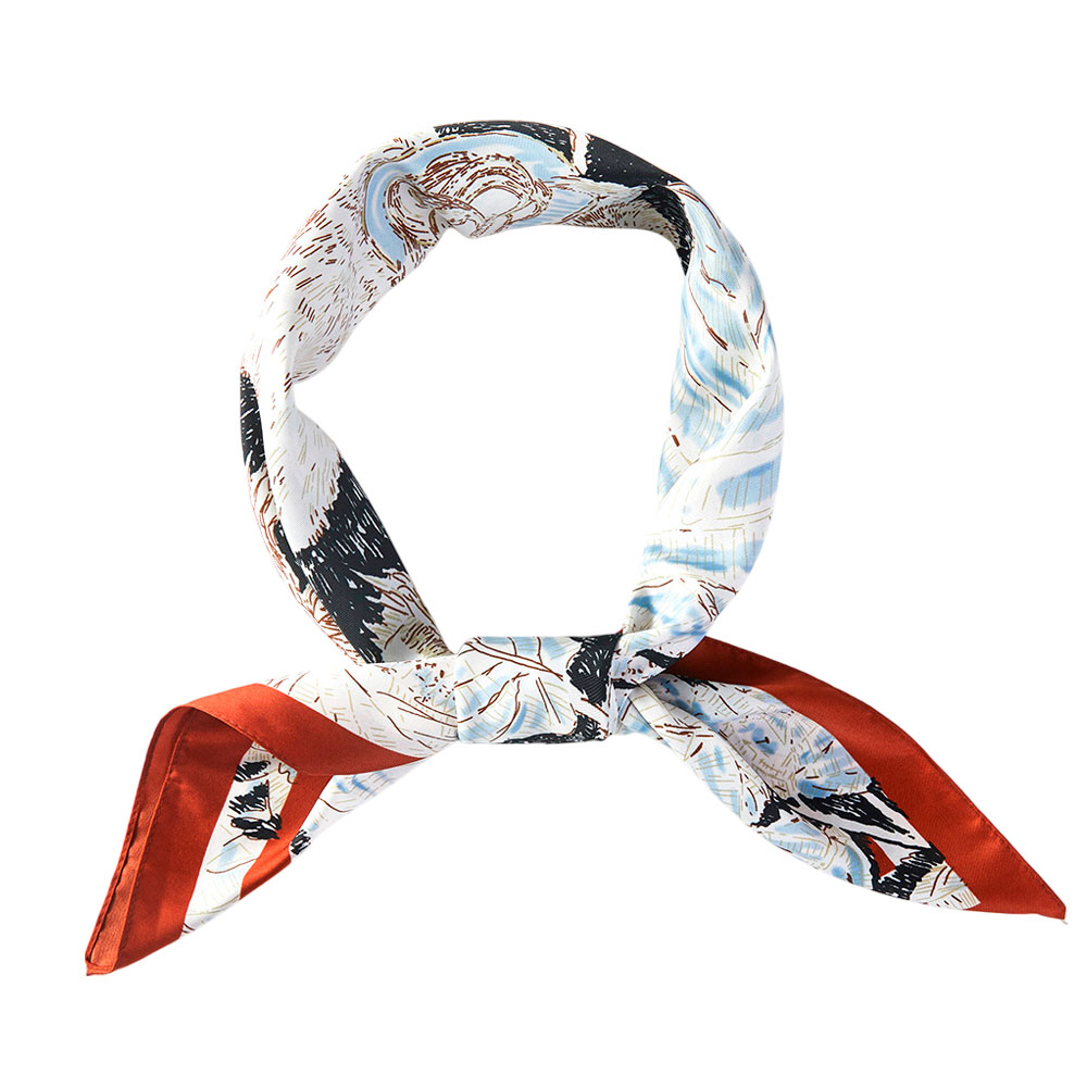Details • Size : 27.5" X 27.5" • Material : 100% Polyester • Elevate your look with this whimsical square scarf featuring a playful squirrel surrounded by lush foliage artwork. Designed with a detailed nature illustration framed in an elegant border, this versatile accessory adds charm whether styled around the neck, hair, or bag. A unique gift for animal lovers and a standout piece for everyday outfits.