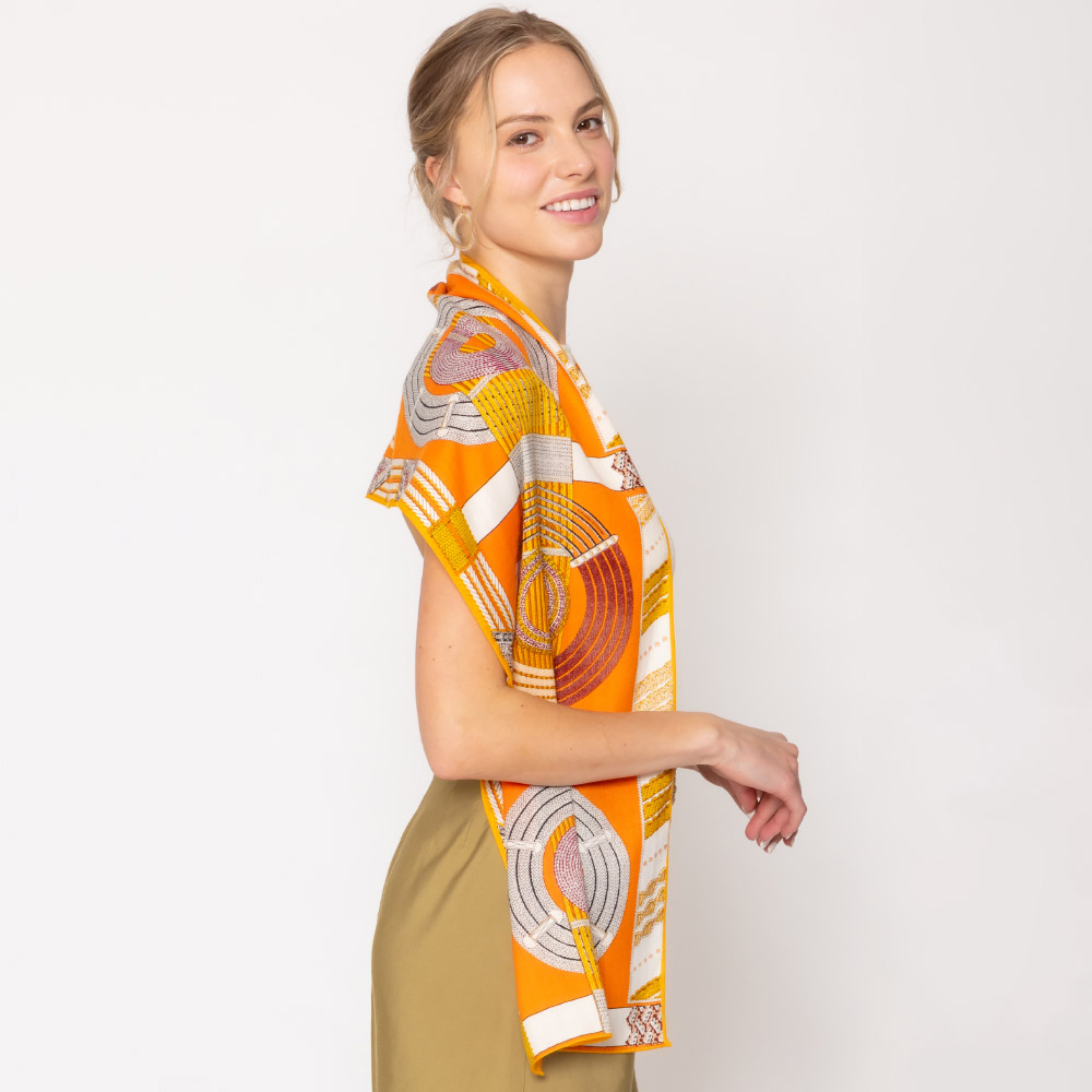 Abstract Pattern Printed Cashmere Silk Blend Scarf
