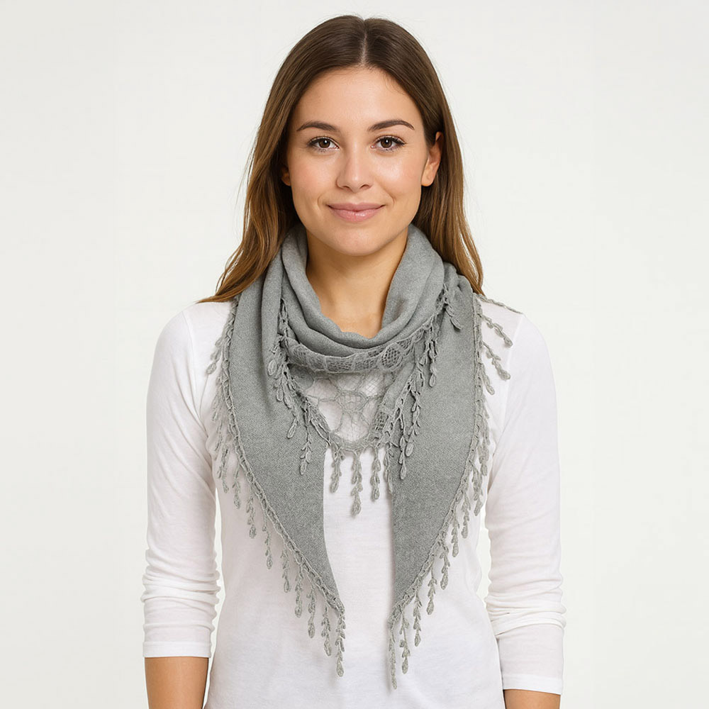 Fringe Detail Triangle Lace Scarf