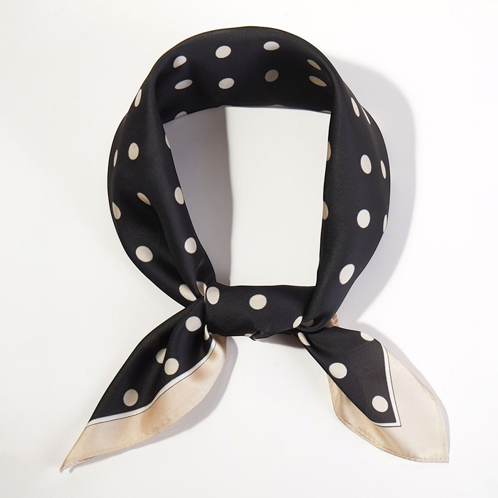 • Classic polka dot square scarf designed for versatile styling around the neck, hair, handbag, or wrist. A timeless accessory that adds a chic, retro-inspired touch to everyday outfits, seasonal looks, and boutique fashion collections while remaining easy to mix and match.