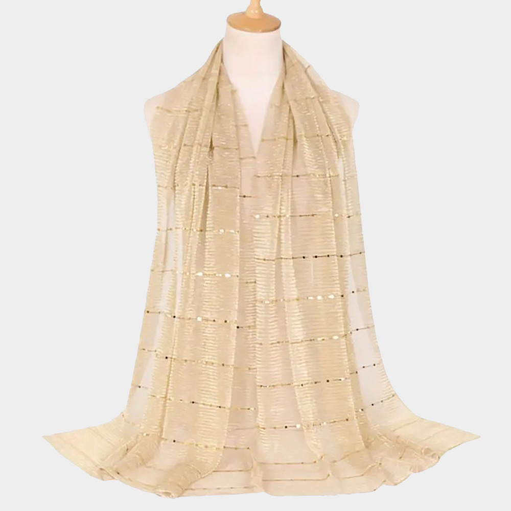 Sheer Solid Color Sparkling Metallic Line Patterned Lightweight Scarf / Shawl